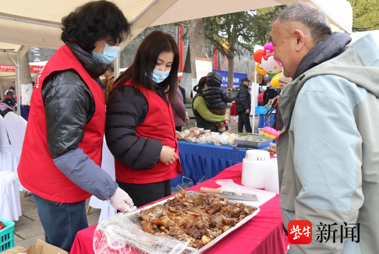 不远处的名特优新产品展销区,人头攒动,“烟火气”十足。24家本土品牌携拳头产品亮相,白蒲茶干、吴窑羊肉、搬经猪头肉等农产品悉数登场,尽显如皋乡土好物风采。市民们提着大包小包,穿梭于各摊位之间。赞叹声、询价声不绝于耳,一派供销两旺的热闹景象。