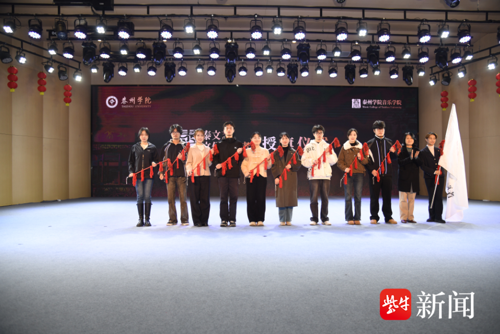 泰州学院音乐学院正式组建“泰文艺”文化志愿者团队,海陵区委常委、宣传部部长方晓玫为团队授旗并赠送马鞭。象征京剧文化符号的马鞭寄寓着“马上就干、马不停蹄”的文化传承使命,志愿者学生代表、教师代表先后发言,明确团队将依托音乐学院专业优势,走进社区开展文化惠民演出、深入校园推进戏曲普及活动,把课堂专业知识转化为服务地方文化发展的实际能力,践行《戏剧振兴三年行动计划》中戏曲文化普及的要求,让梅派艺术贴近大众。