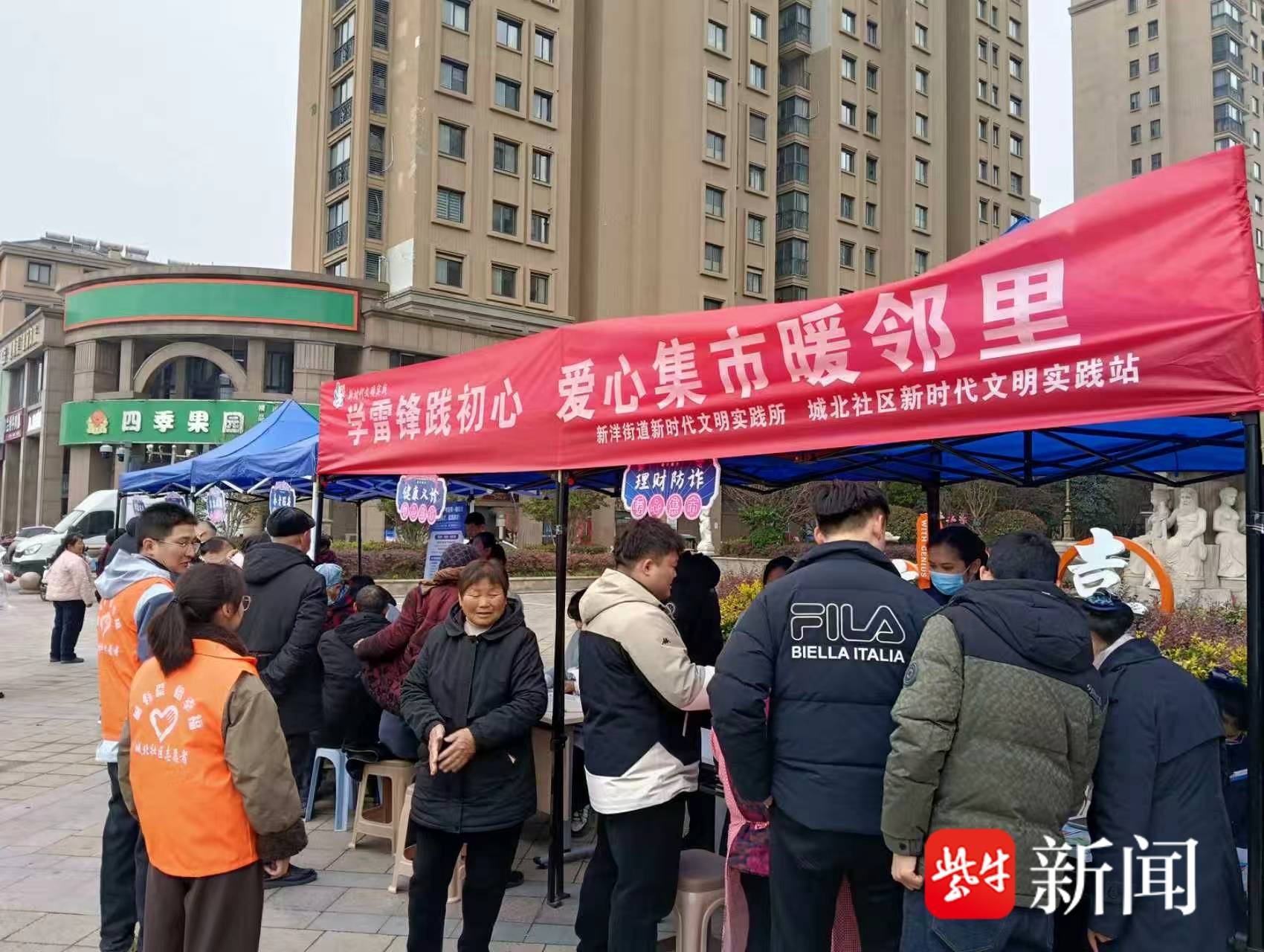 三月春风暖人心,雷锋精神代代传。为大力弘扬新时代雷锋精神,深化“奉献、友爱、互助、进步”的志愿精神,营造邻里互助、文明和谐的社区氛围,3月18日下午,盐城市亭湖区新洋街道新时代文明实践所、城北社区新时代文明实践站、红十字博爱家园、城北社区妇女联合会及网格服务管理中心在嘉业上郡小区广场开展“学雷锋践初心 爱心集市暖邻里”主题志愿服务活动,把贴心、暖心、安心的便民服务送到居民家门口,以实际行动践行初心使命。