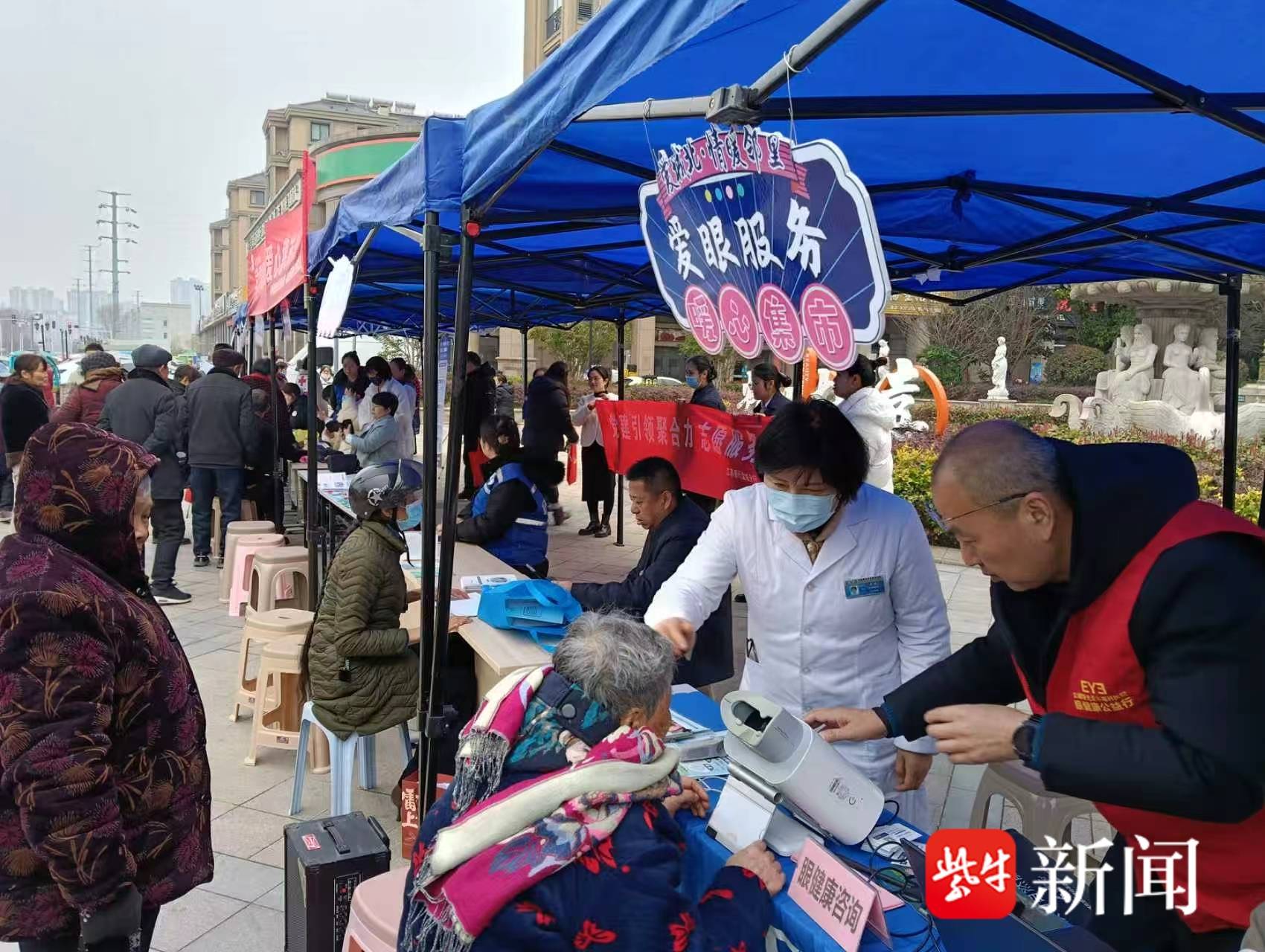 健康服务摊位前,医护志愿者为居民免费测量血压、血糖,细致讲解慢病管理、日常保健知识,并开展爱眼义诊,提醒大家科学用眼、守护视力,把健康关怀送到群众身边。