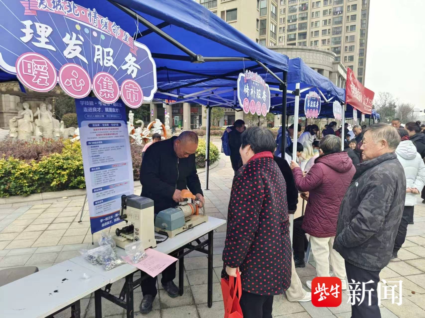 生活服务摊位人气高涨,免费理发、便民维修、家政咨询、养老服务等项目一应俱全。志愿者们耐心细致、手法娴熟,为老年居民修剪发型,为居民维修小家电、解答居家养老与家政服务疑问,切实解决居民生活中的小难题、小需求。