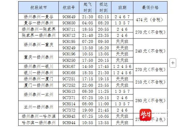 记者了解到,截至目前,春秋航空扬州泰州出发夏秋航季计划执飞21条航线,覆盖国内外19个目的地,往返周计划座位量超4万座,以充足运力保障扬泰市民商务、文旅等出行需求。国内方面,3月31日起,恢复扬州泰州至张家界航线,每周3班,打通春日文旅出行通道;加密重庆航线至每周14班,同步加密银川、厦门、兰州、哈尔滨等热门航线,提升区域通达性。国际方面,4月11日起,新增扬州泰州至曼谷往返航线,每周4班,丰富市民出境游选择。