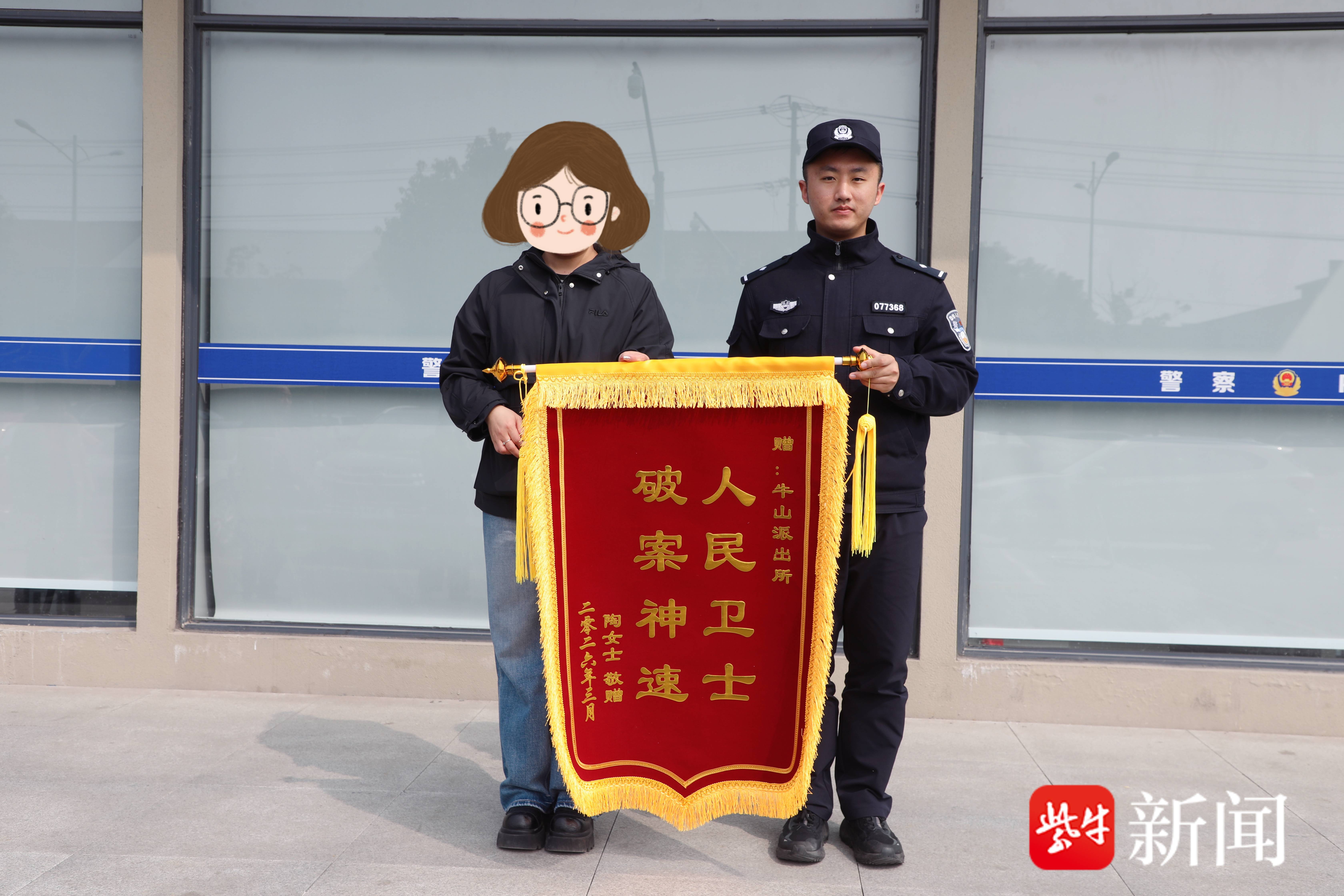 扬子晚报网3月25日讯(通讯员 袁青青 李鑫鑫 记者 孙锐)“真的太感谢你们了,没想到这么快就帮我把东西找回来了!”3月20日上午,家住东海县牛山街道的陶女士满怀感激地将一面印有“人民卫士 破案神速”的鲜红锦旗送到牛山派出所,对民警快速破案、为其追回损失表示诚挚的谢意。