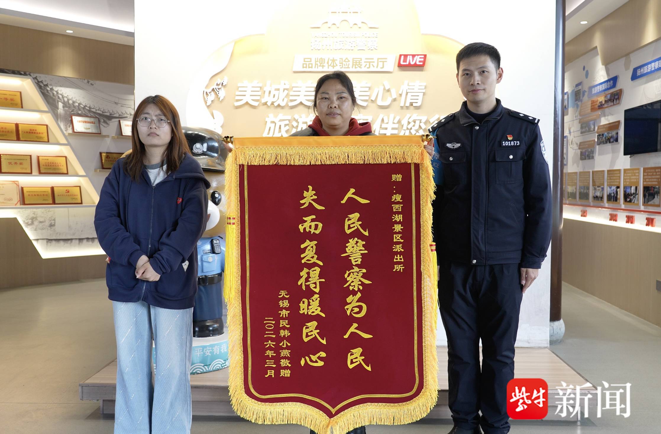 民警立即展开核查。景区人流量大,失主并未在现场报警,民警连续作战,24小时不停歇地开展排查。一方面通过视频一帧一帧对疑似失主进行甄别;另一方面联系景区周边各点位,核实是否有相关的寻物信息。经过彻夜工作与多方比对,民警最终精准锁定了失主身份——无锡游客韩女士。