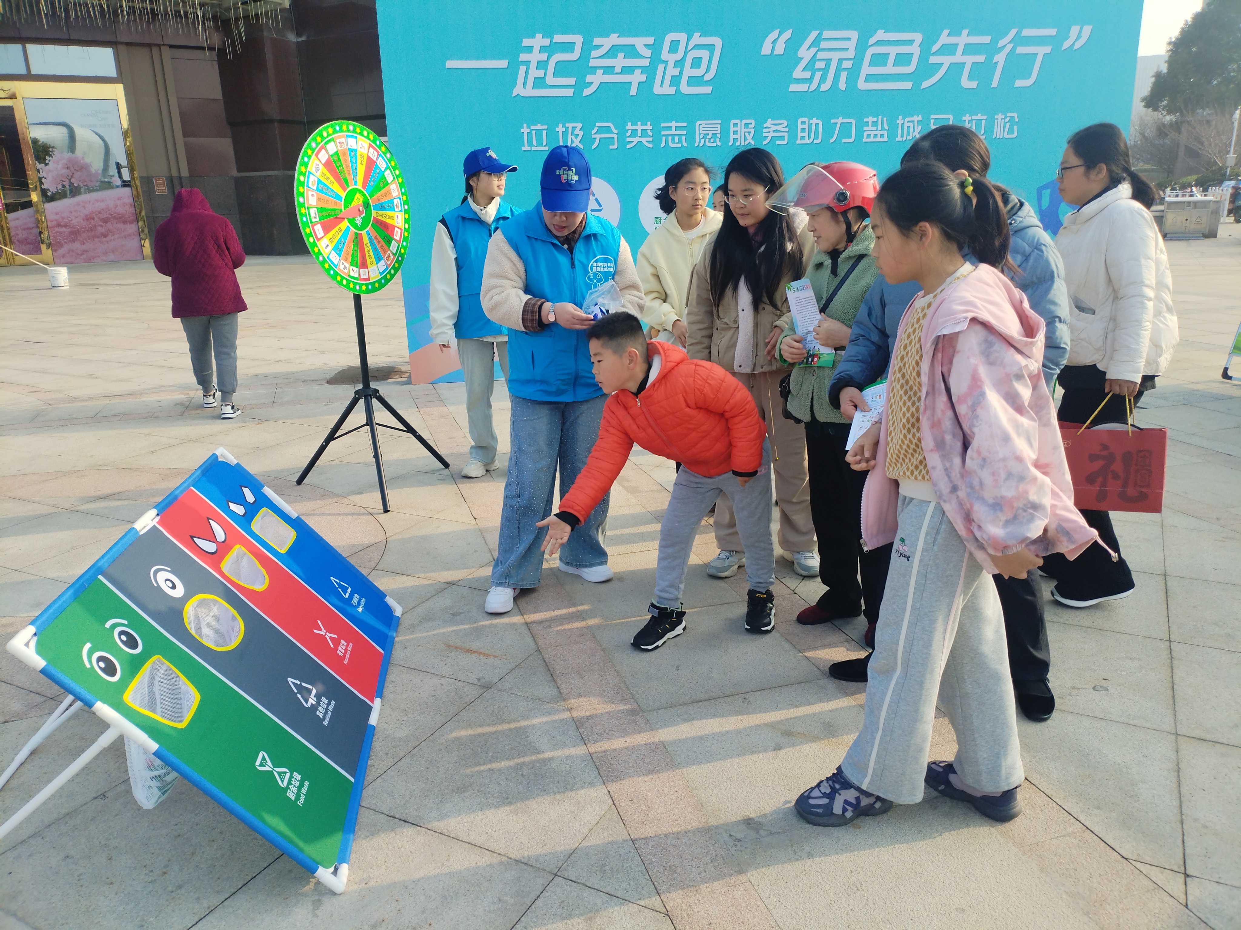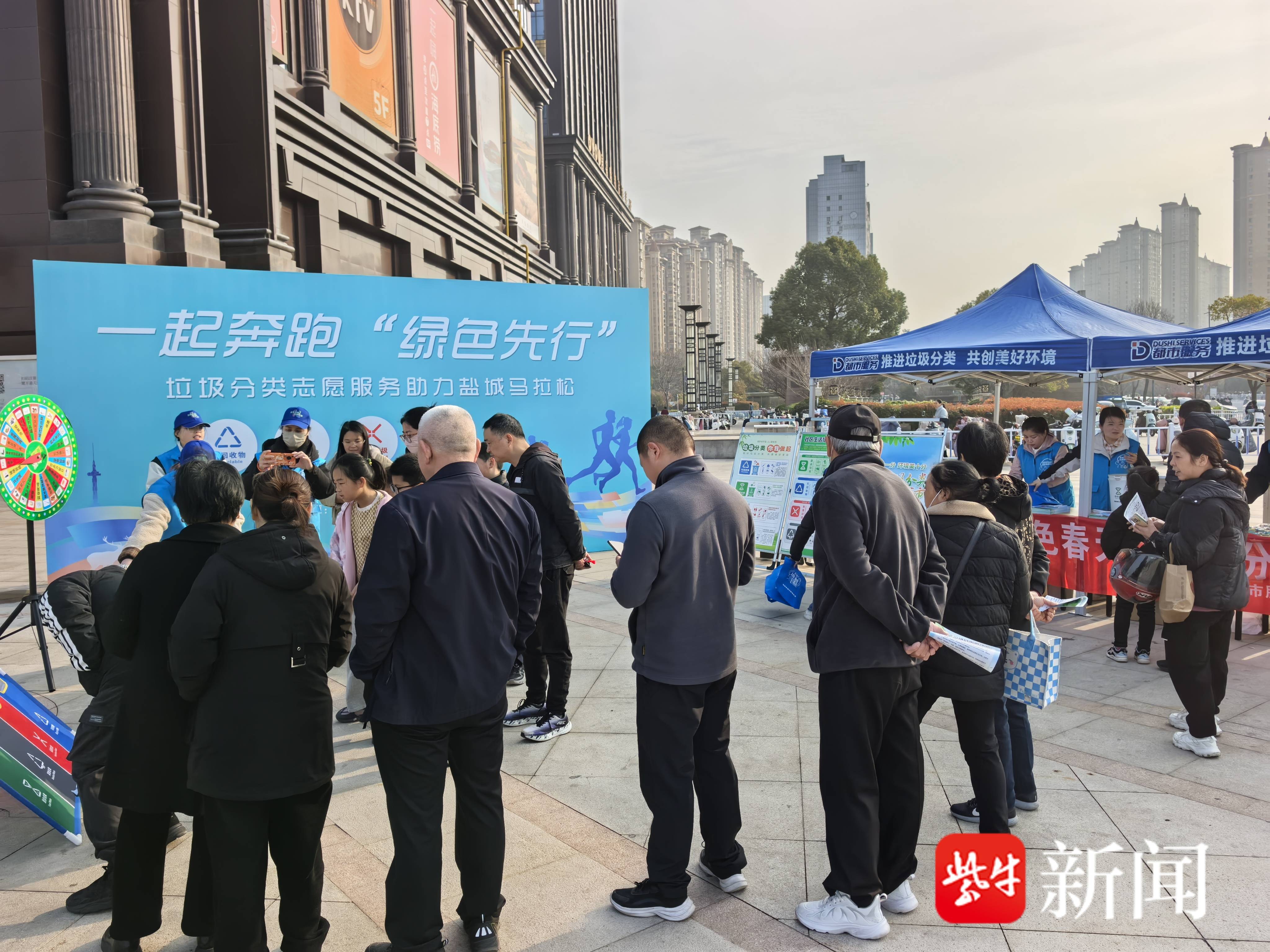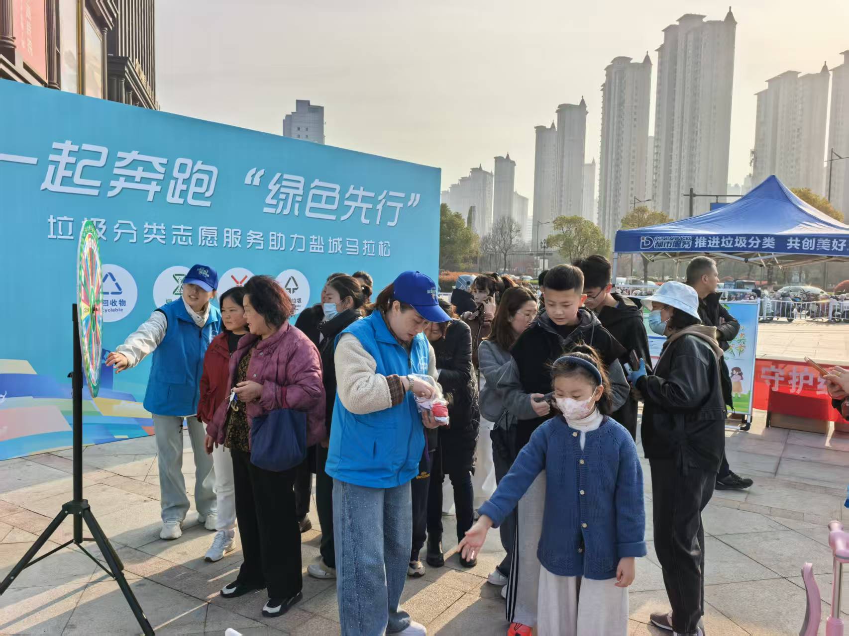 除了硬核的秩序守护,绿色与环保的理念更是贯穿了本届马拉松的始终。在奥体中心起点处,一场由城管部门指导、都市集团等第三方单位承办的垃圾分类宣传活动,成为了赛场外的一处亮点。
