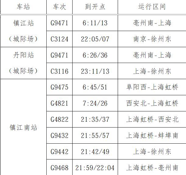 为让旅客出行更便利,春假、清明假日期间,铁路镇江站在春游运输增开7.5对基础上,统筹协调,科学调整提供运力保障,计划再增开旅客列车4.5对,其中镇江站增开1对,主要是徐州、上海方向的列车;丹阳站增开1对,主要是徐州、上海方向的列车;镇江南站增开3对,主要是西安、安徽、上海方向的列车。