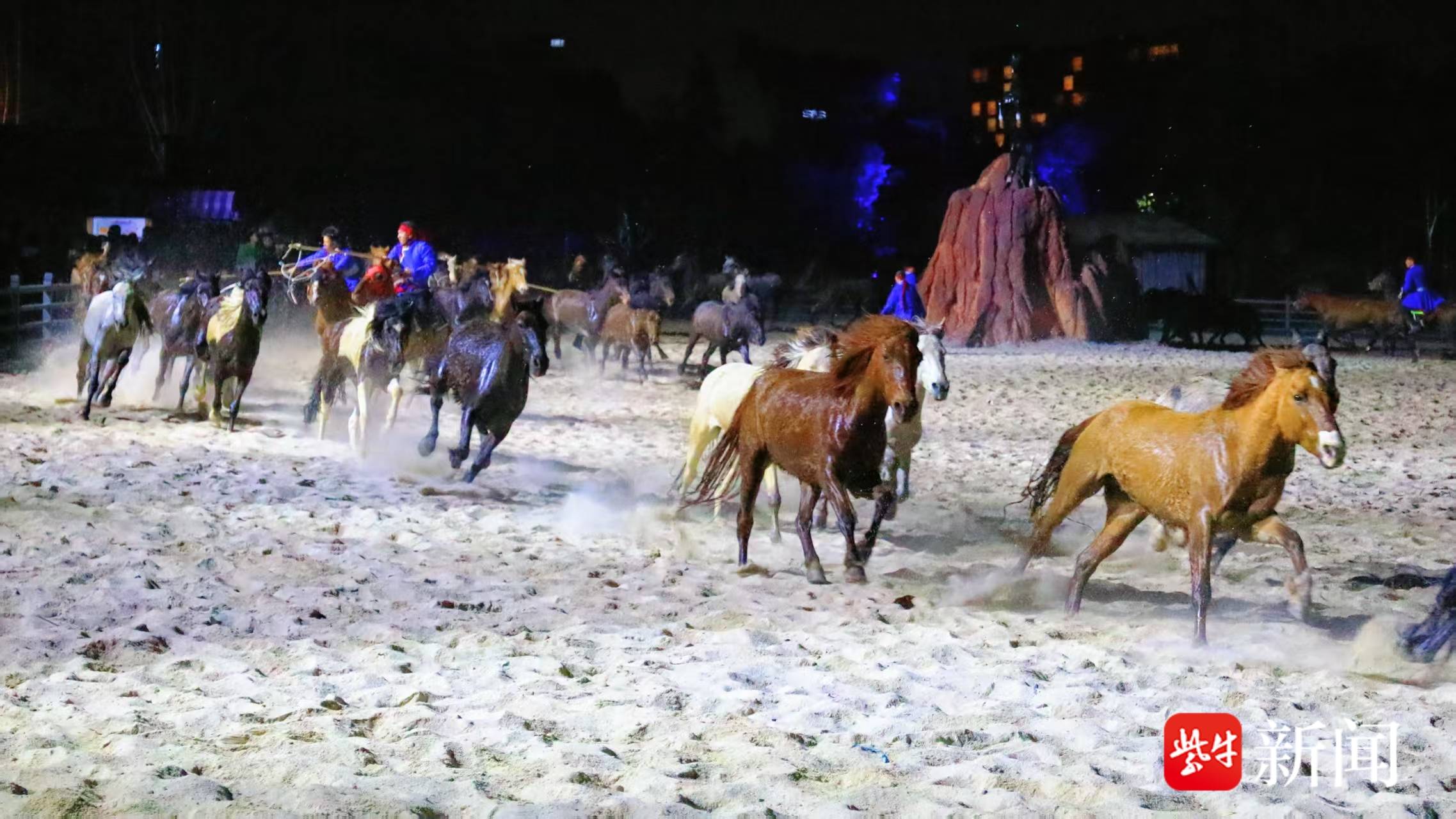 南通森林野生动物园王牌实景演艺《天马浴河》完成全面升级,将于4月1日震撼上演。此次升级重点焕新夜间演出,同时保留白天专属场次《天马浴河·马背雄风》,实现日夜双演、精彩翻倍。