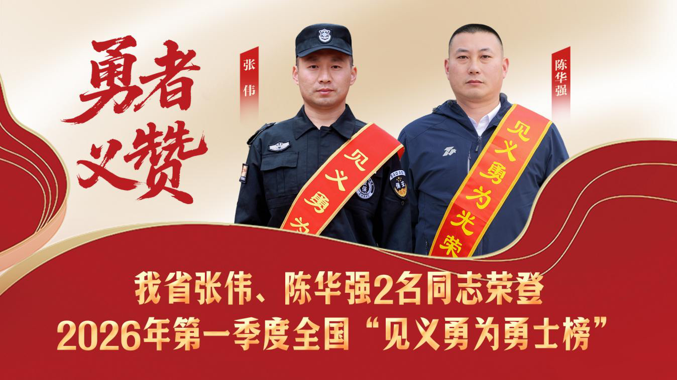 3月30日,中央政法委发布2026年第一季度全国“见义勇为勇士榜”,64位见义勇为勇士上榜。江苏南京浦口康和物业管理有限公司保安队长张伟、盱眙县太和街道办事处办事员陈华强2位同志光荣登榜。