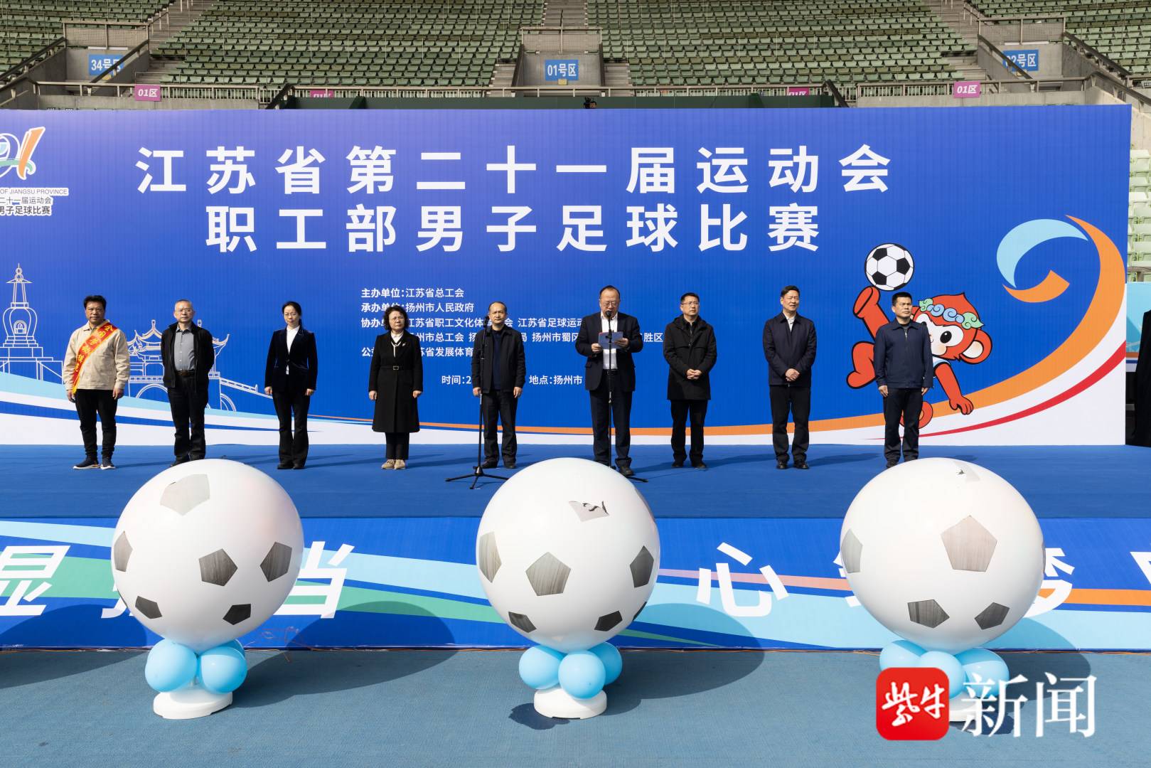 扬子晚报网3月30日讯(记者 曹卢杰)绿茵燃激情,苏工展风华。3月30日,江苏省第二十一届运动会职工部男子足球比赛圆满完成各项赛事,于扬州市体育公园体育场顺利闭幕。江苏省总工会副主席、党组成员臧铁柱,省职工文化体育协会副会长、秘书长董明伟,省职工文化体育协会常务理事寇芳,省总工会宣传教育和网络工作部部长景月琴,扬州市总工会党组书记、副主席蒋元峰等领导出席颁奖仪式并颁奖。