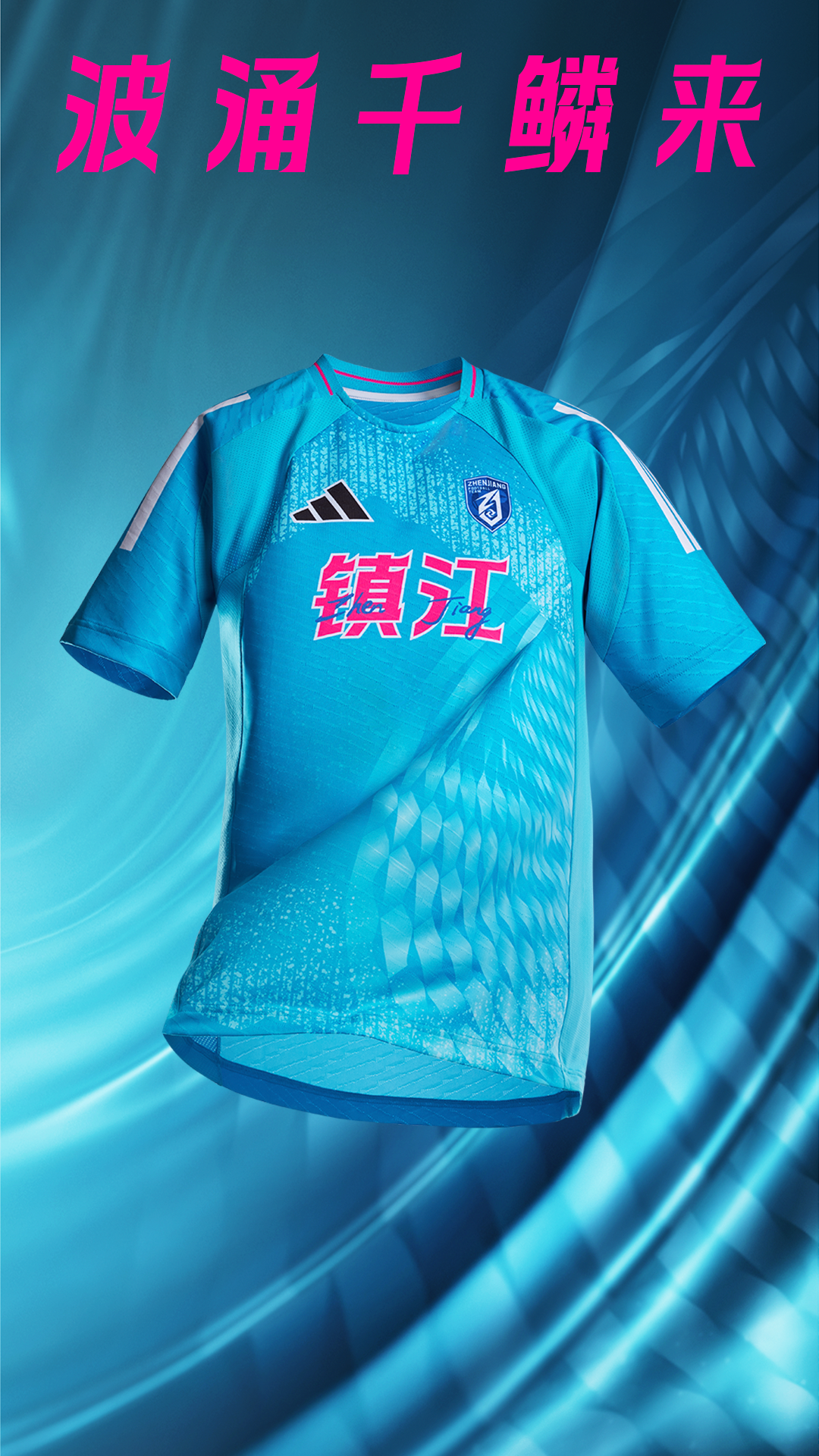 镇江队的主场队服延续了去年粉色的主色调,红紫色交融宛如傍晚的霞光铺满江面。江面由窄向宽奔涌。有着“潮平两岸阔”的壮阔意境;客场队服是蓝色,天蓝漫卷,江水奔涌、波光粼粼,宛若将镇江山水灵秀化为赛场上的诗意注脚。