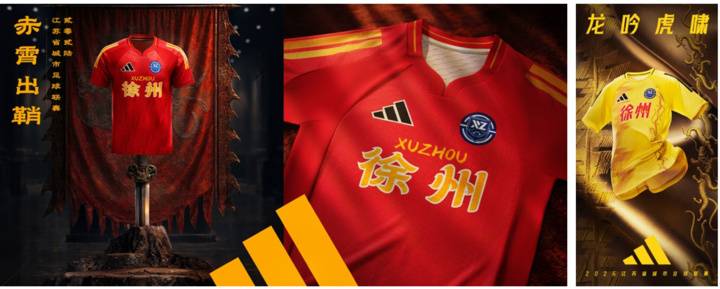 主场比赛服凝赤色烈焰为魂,纹如赤霄剑锋芒出鞘,承两汉发源地之雄浑气魄,彰徐州人开拓敢为的铮铮风骨;客场比赛服撷汉家金黄色为底,以龙纹汉界作不对称铺陈,藏龙吟虎啸之霸气。一衣一纹,皆铸汉魂,赤霄出鞘,楚河争汉界。