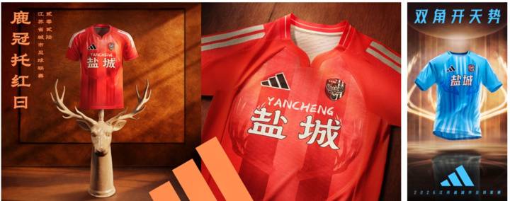 主场比赛服赤焰燃动,鹿角舒展处,芦苇纹理随奔跑倾泻如湿地潮汐,野性与灵动的气韵凝作衣间锋芒;客场比赛服天蓝如波,渐变色中倒映湿地水色,鹿角元素与粼粼光影交织,将生态之城的清新灵秀披作远征战衣。双色交融,自然之力与竞技之魂在此共鸣——鹿冠托红日,双角开天势。