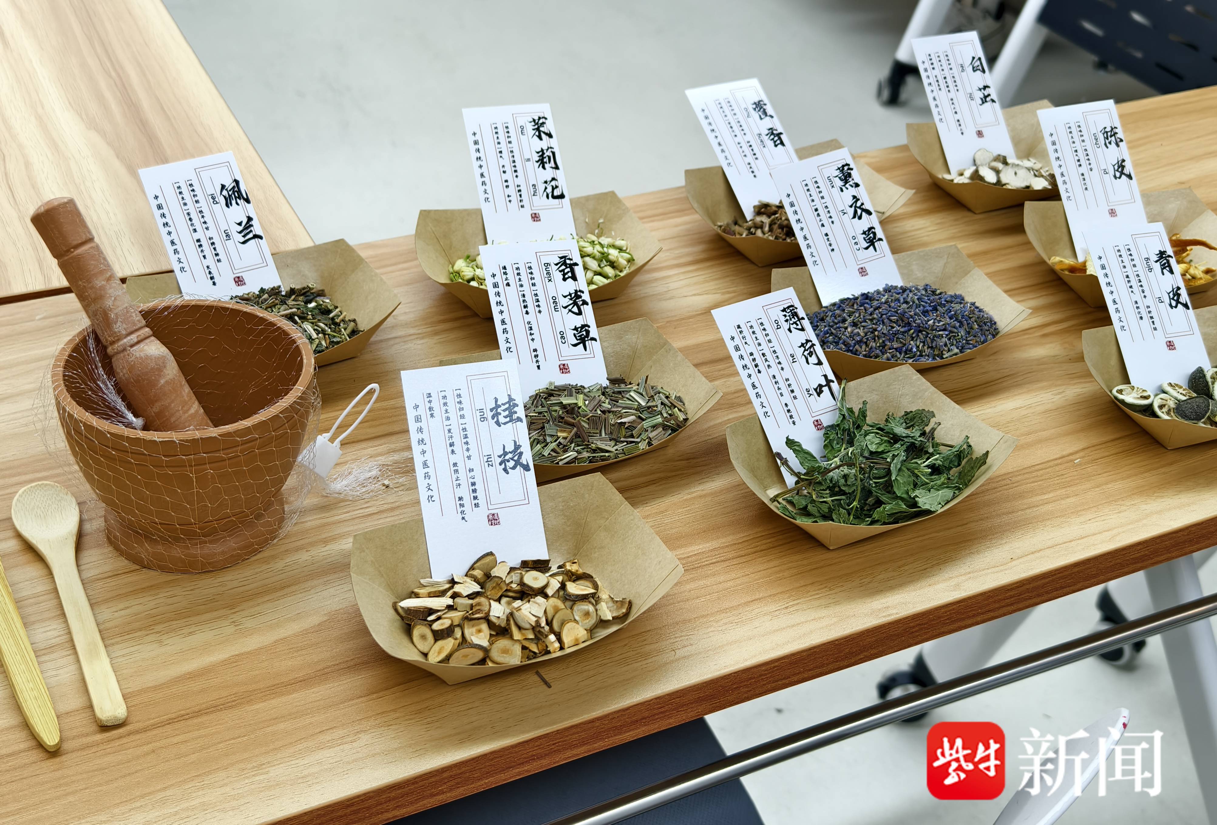 一旁的香囊DIY区,中草药香氤氲弥漫。艾草、薄荷、薰衣草、陈皮、茉莉花等多种天然中草药整齐陈列,每一味药材都契合清明时节祈福驱秽、清心安神的传统民俗。同学们自主挑选心仪的药材,细心搭配比例,用木臼慢慢捣磨成细粉,再将药粉装入精致的香囊袋,系上柔美的流苏,全程专注。从选料、配比、捣药到装袋、系绳,每一个步骤都饱含心意。现场,一个个造型别致、香气清雅的香囊陆续成型,延续了清明制作香囊的古老民俗,融入了同学们独有的巧思,传统民俗在当代青年的指尖焕发新生。