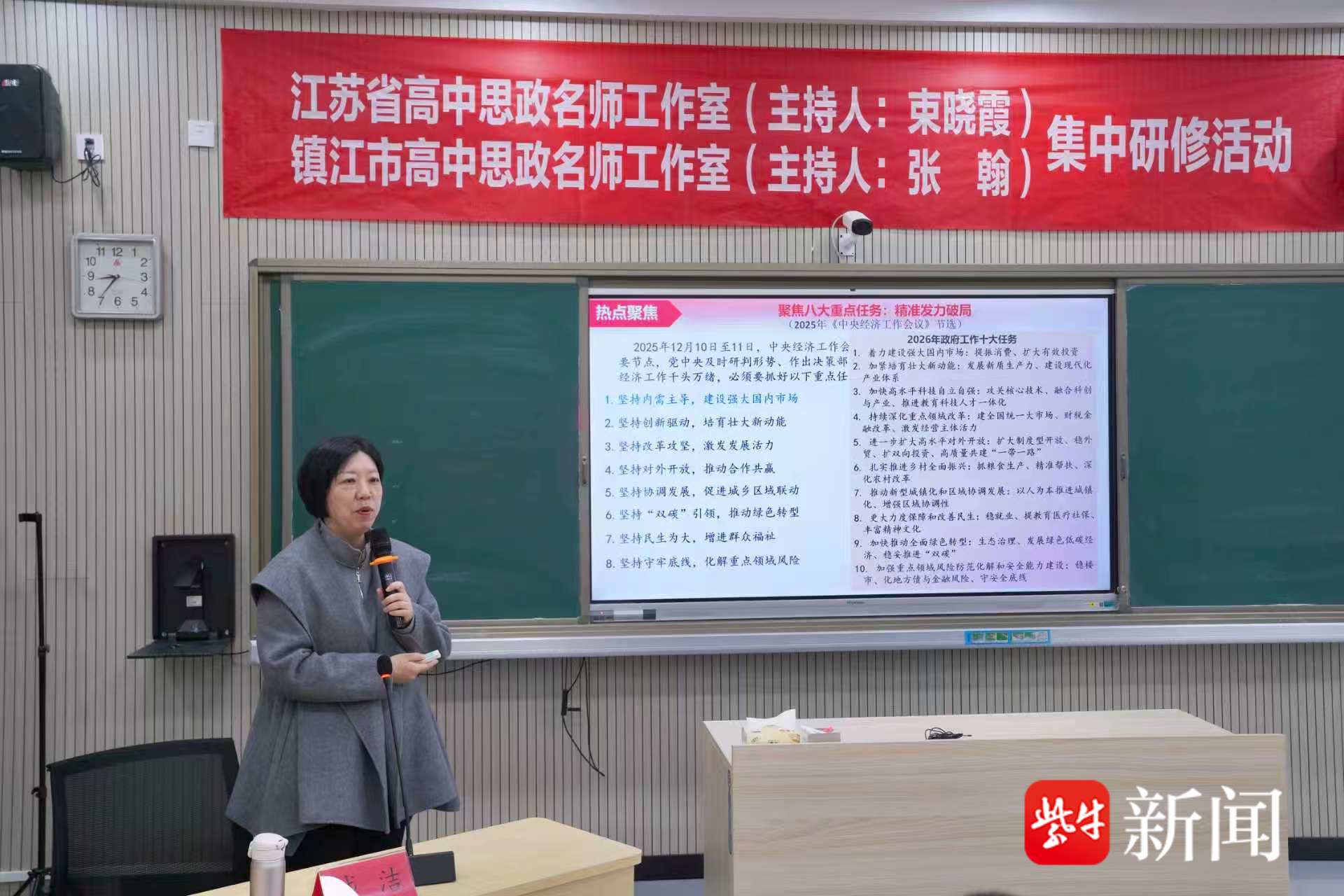 扬子晚报网4月2日讯(通讯员 刘晓丽 记者 万凌云 姜天圣)3月26日至29日,江苏省高中思政名师工作室(主持人:束晓霞)和镇江市高中名师工作室(主持人:张翰)联合教研活动在省镇江一中顺利开展。本次活动聚焦考教重点、难点与创新点的突破,通过专家讲座、名师分享、同课异构等多元形式,着力破解教学与评价中的关键问题。