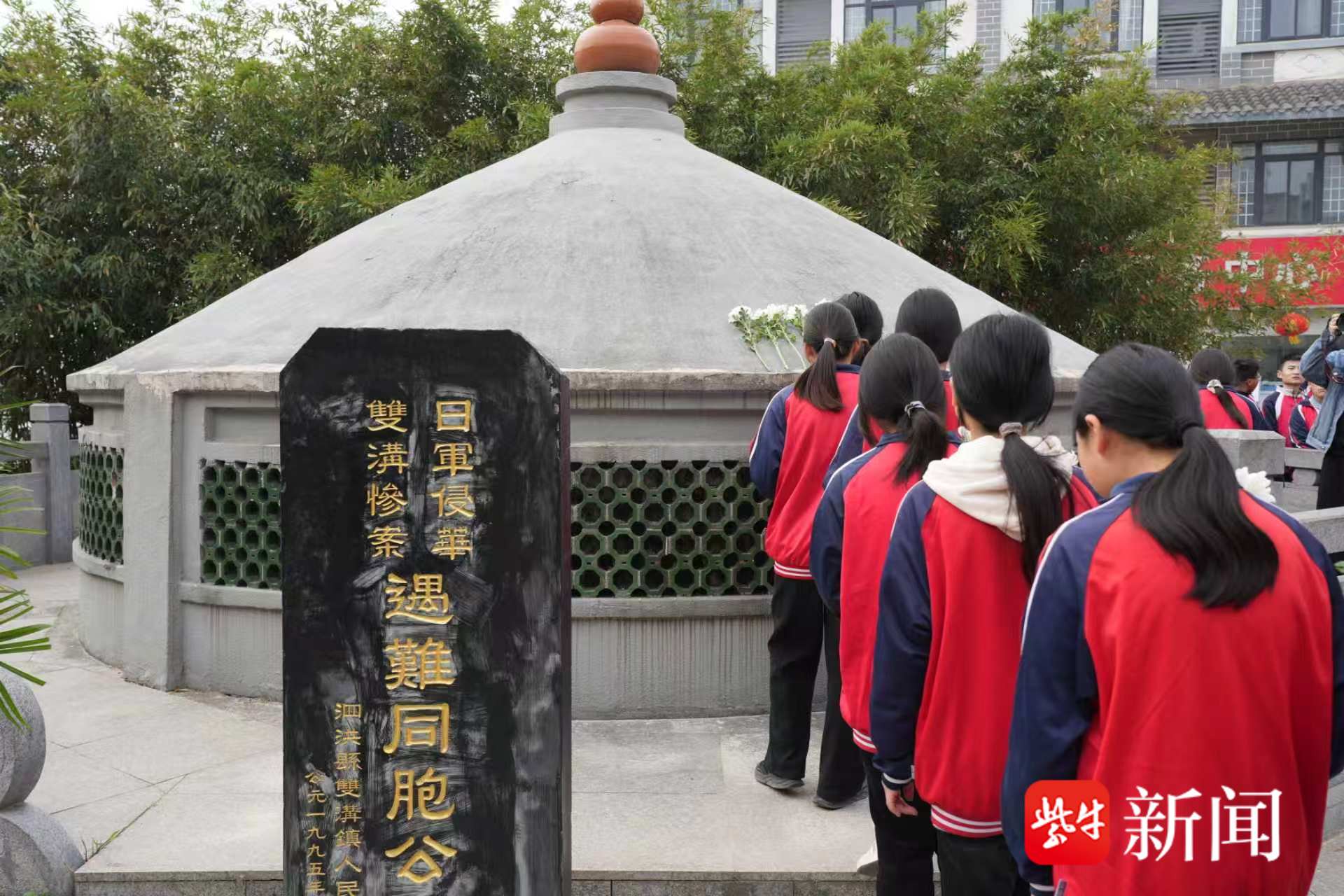 泗洪百余名师生祭扫双沟惨案遇难者同胞公墓