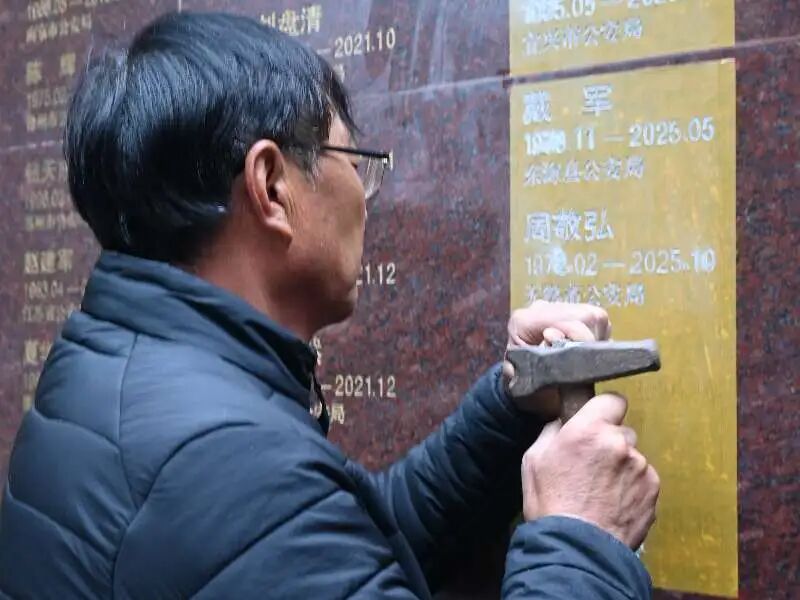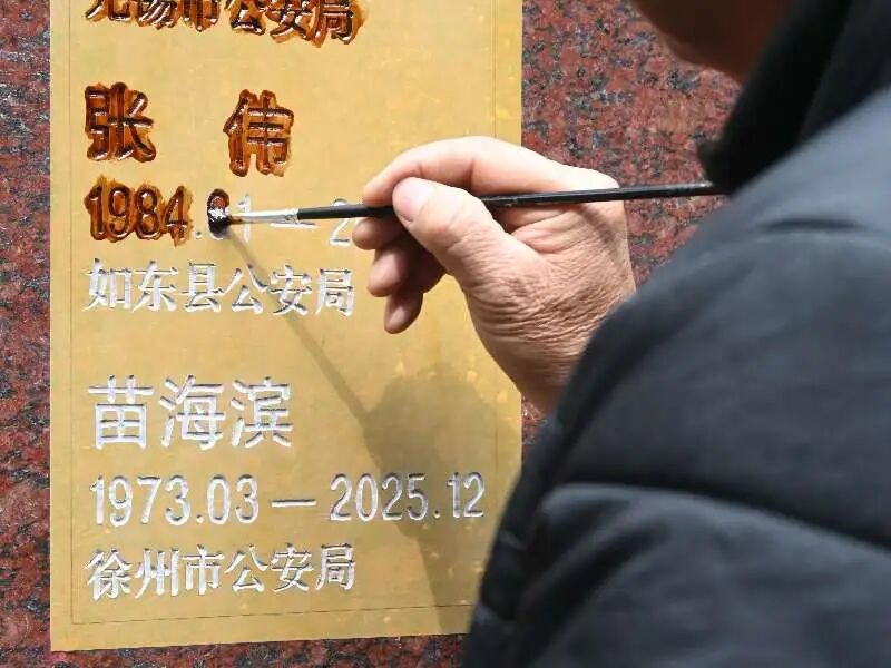 石刻机在墙上游走,张伟的名字逐渐清晰。2025年10月10日,如东县公安局刑侦大队第四责任区中队指导员张伟连续奋战至深夜研判多起诈骗案件,11日凌晨处置警情后仅休息4小时,又继续工作、研判相关案情——就在这个过程中,他倒下了。办公桌上,还摊着未看完的案卷,电脑屏保还闪烁着“警察”二字,双胞胎儿子的照片静静摆在一旁,他再也无法兑现陪伴孩子的承诺了。