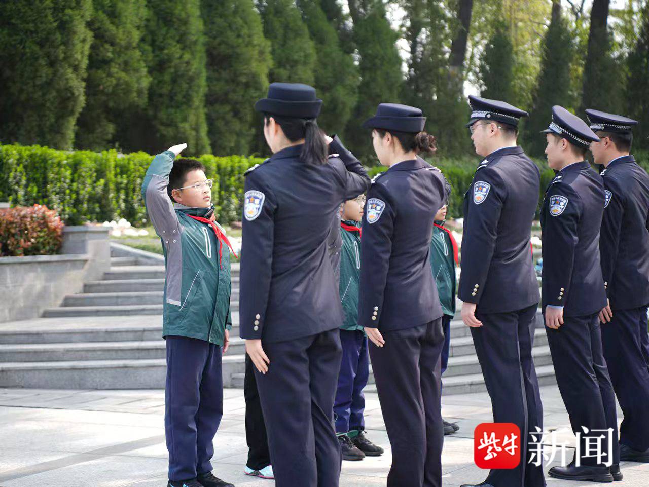 镇江公安青年民警祭扫烈士陵园 与少先队员共传红色英烈精神