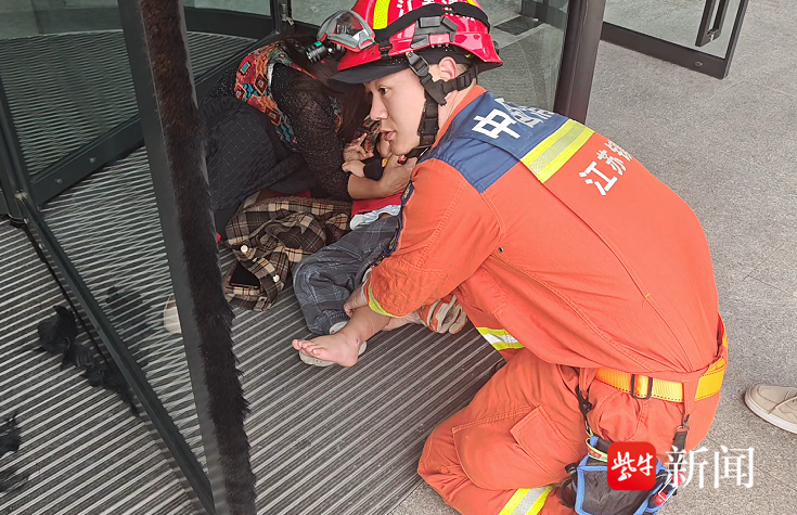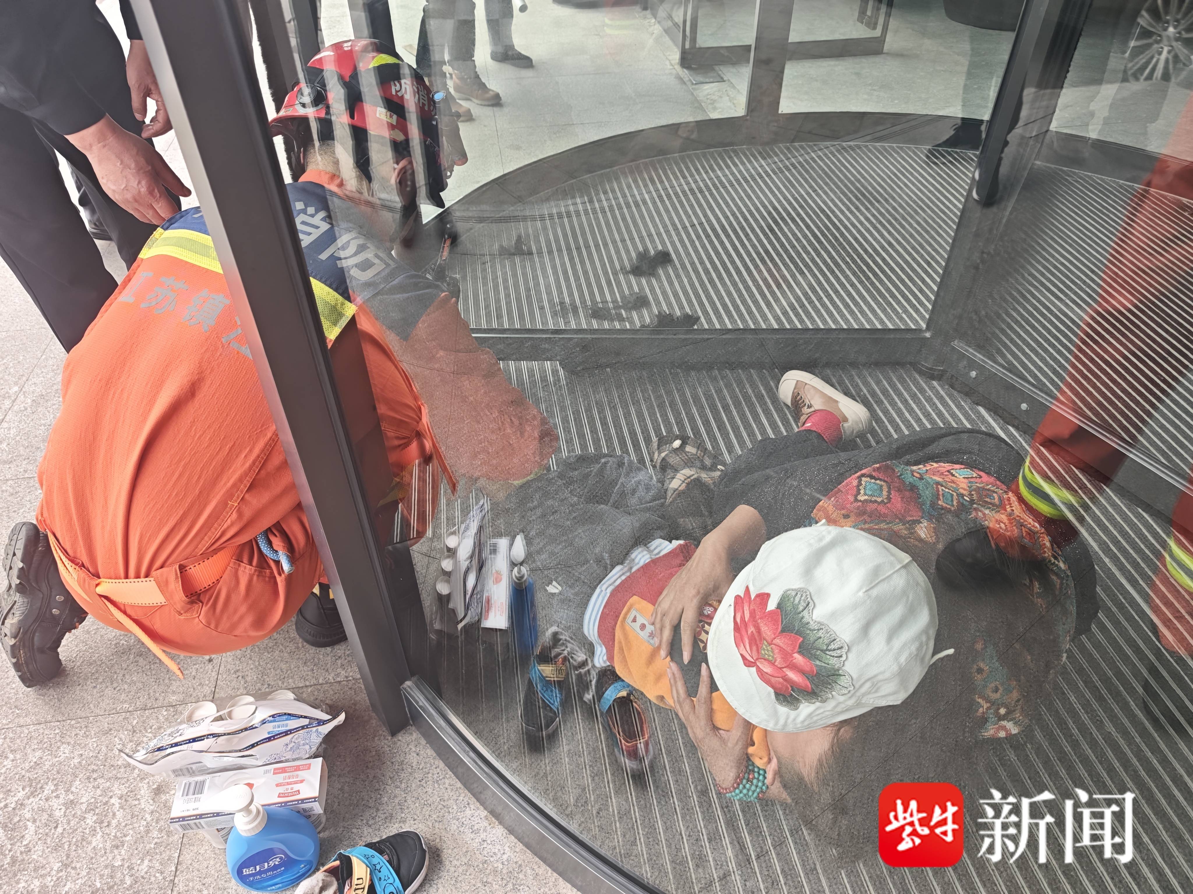 幼童脚卡旋转门,镇江消防两分钟火速救援