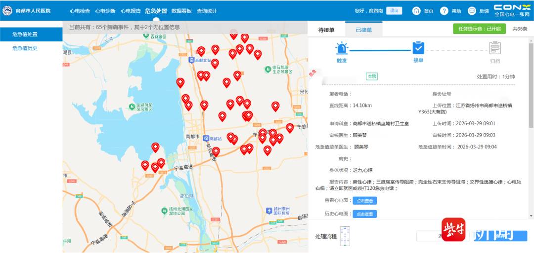 高邮“心电一张网”工程再立功,及时拯救一名“心脏停摆”患者