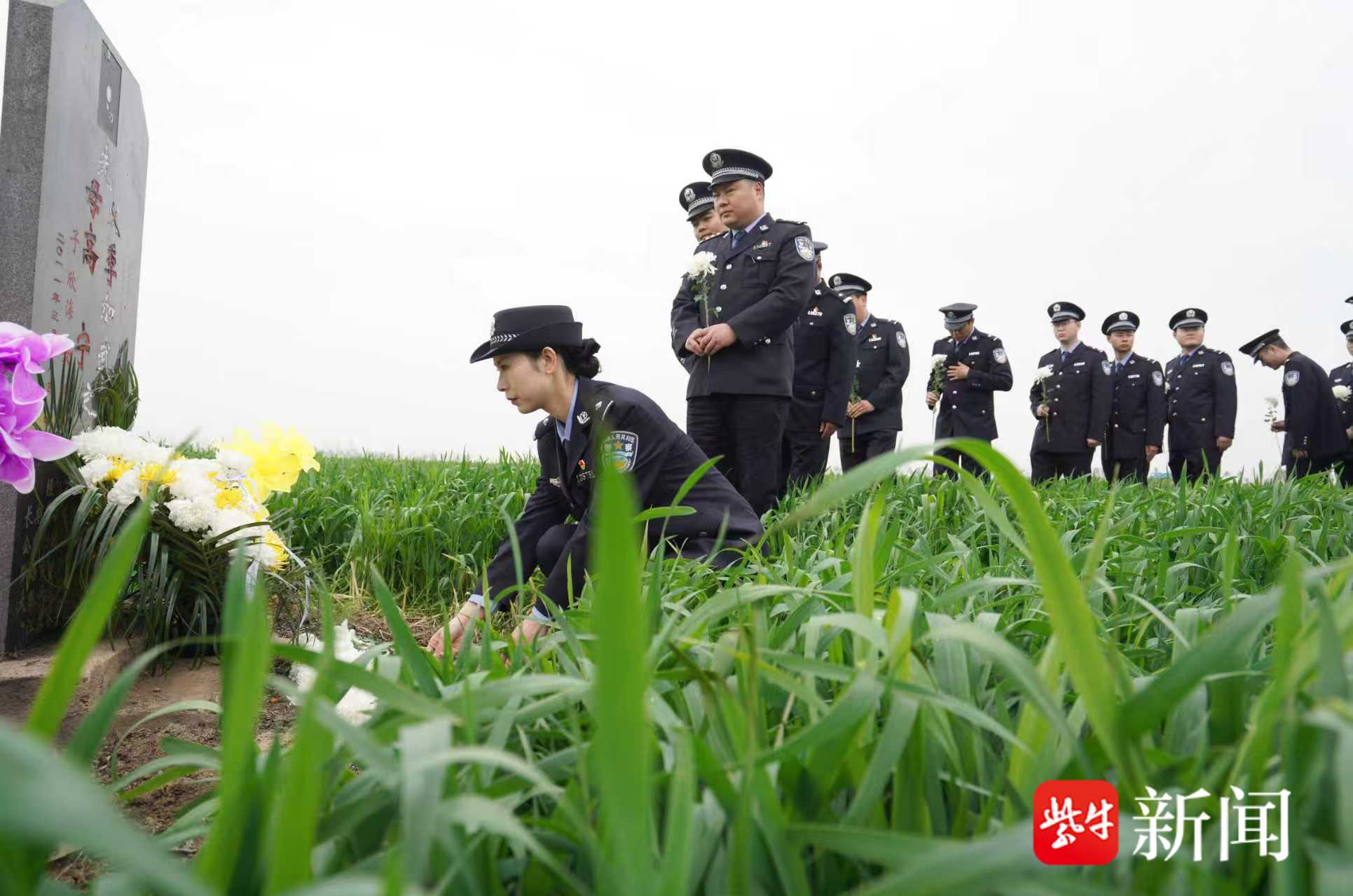 扬子晚报网4月3日讯(通讯员 李小珍 记者 高峰)清明寄哀思,奋进慰忠魂。4月3日,泗洪县公安局组织36名青年民警代表前往因公牺牲民警季加武墓地开展“致敬 · 缅怀 · 奋进”清明祭扫活动。
