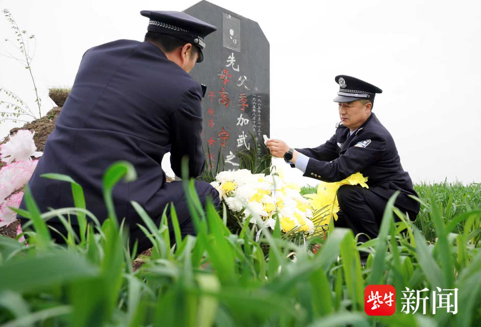 “清明节,我们来看您了!”泗洪36名青年民警在季加武墓前寄哀思