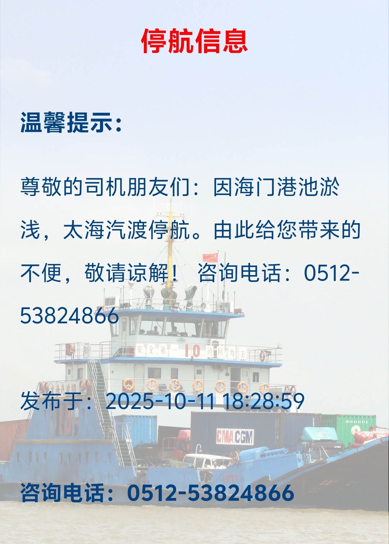太海汽渡停航通告