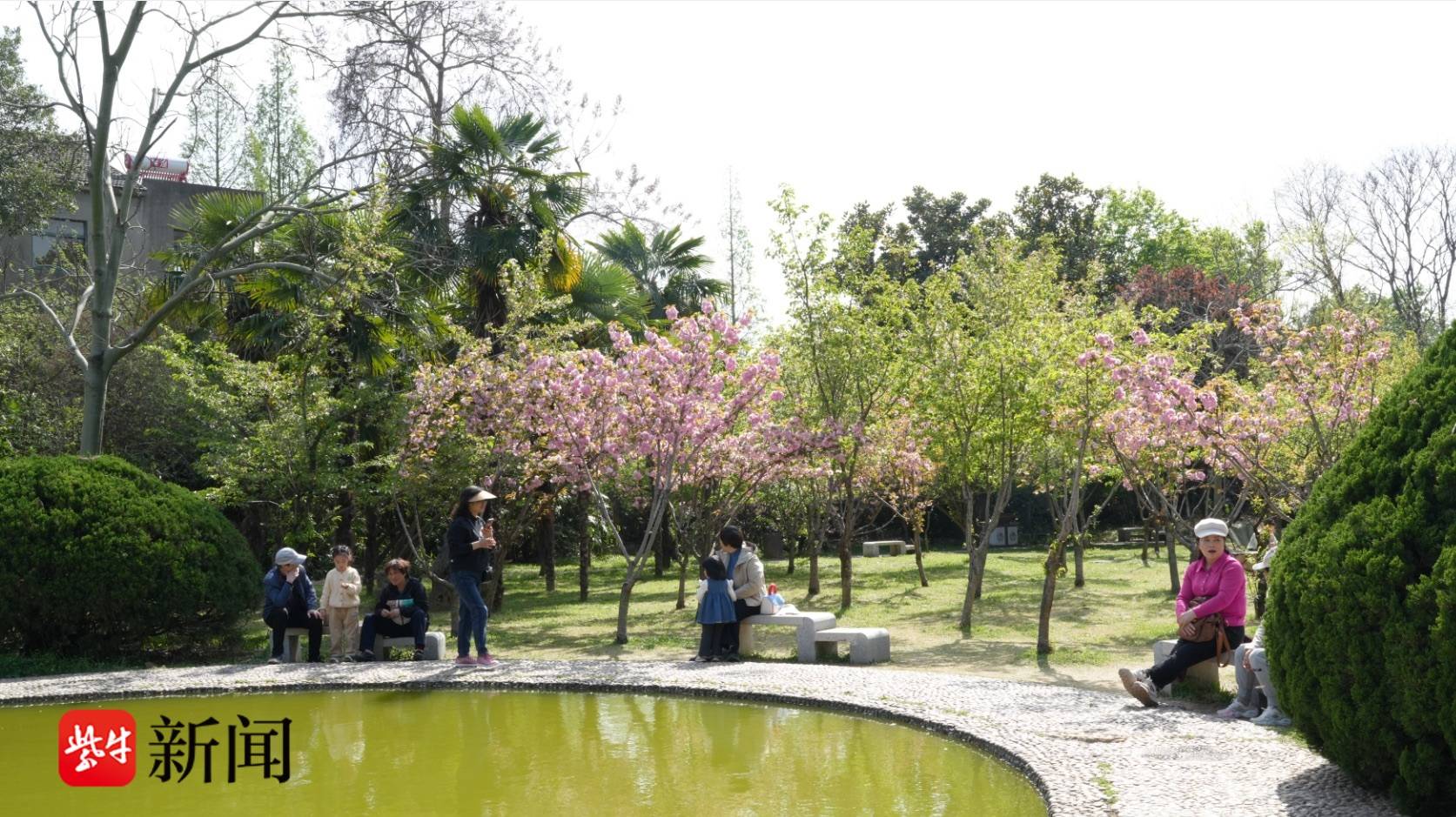 镇江宝塔山公园晚樱盛放,绿樱 “郁金” 惊艳亮相引客来