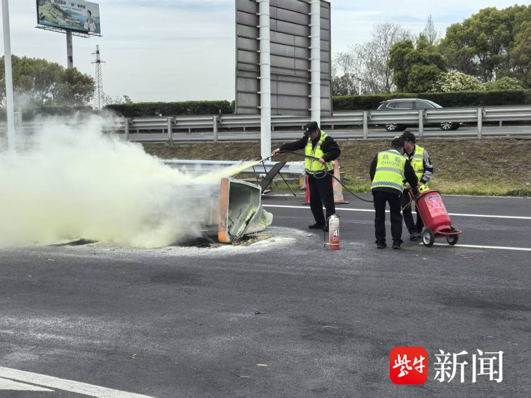 扬子晚报网4月9日讯(通讯员 倪继文 记者 姜天圣)“快救火!快救火!”4月7日16时左右,沪蓉高速往上海方向,一名司机拼命向丹阳窦庄服务区员工求救。危急时刻服务区员工临危不惧、快速响应,在消防救援队伍抵达前成功将火势扑灭,有效避免了火势蔓延扩大。他们不仅保障了司乘人员生命财产安全与高速公路通行秩序,更用快速行动与勇敢担当诠释了服务区的应急保障责任。