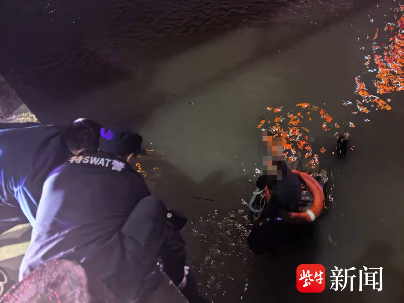 4月8日, 受弱冷空气影响,江苏灌南县城区风雨交加,寒气逼人。“喂,桥西派出所吗?”“是的,您请讲。”“快来救人,人民桥下盐河西岸边有人落水了......”当晚9时39分,灌南县公安局桥西派出所值班室电话骤然响起,一名居民焦急的求救声瞬间触动了民警辅警的心。值班所领导潘国峰当即与民警张锐、辅警刘磊等携带救生圈、绳索等救援装备,仅用2分32秒便赶至距离派出所约2公里的事发现场,火速展开救援行动。