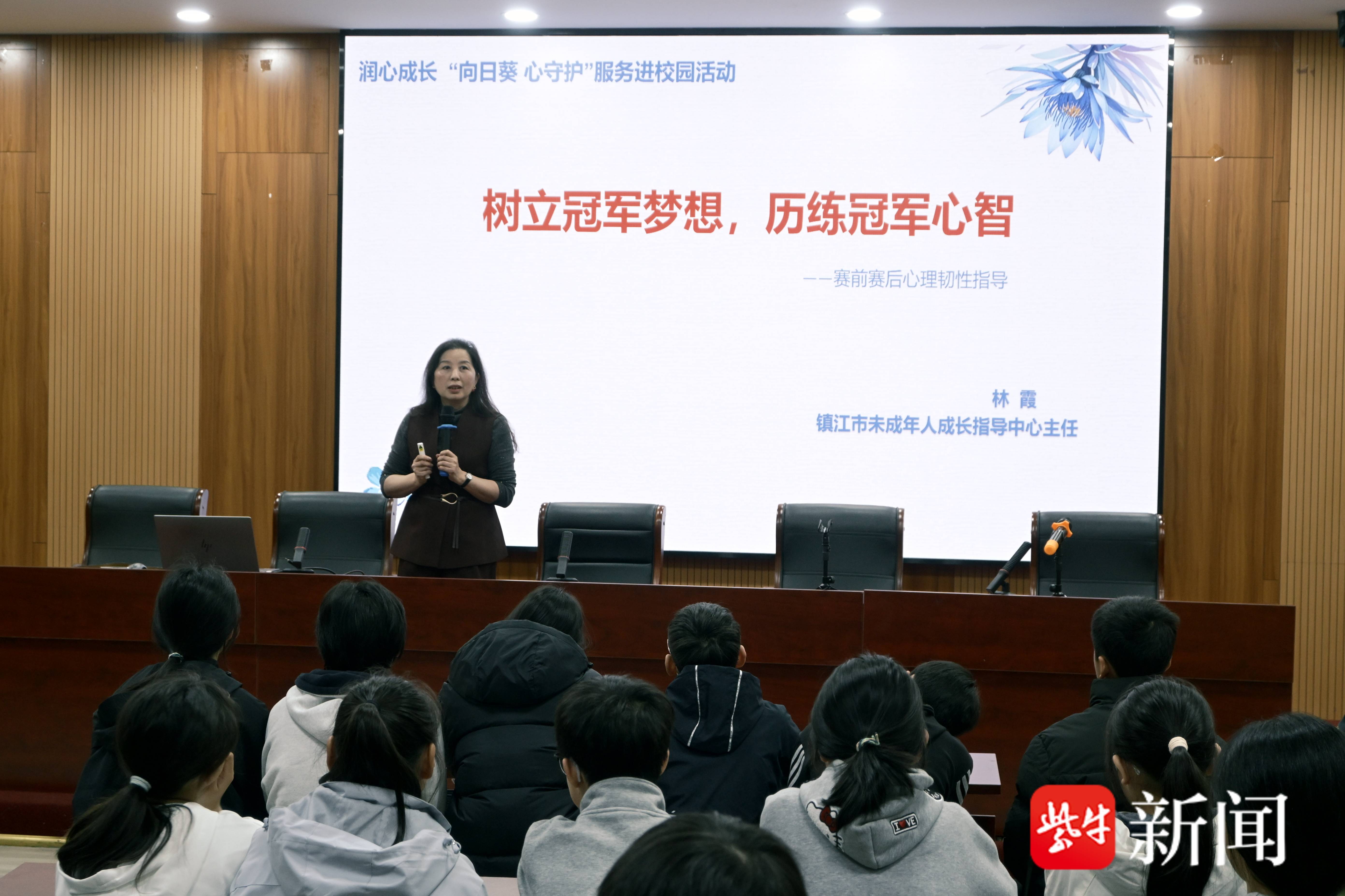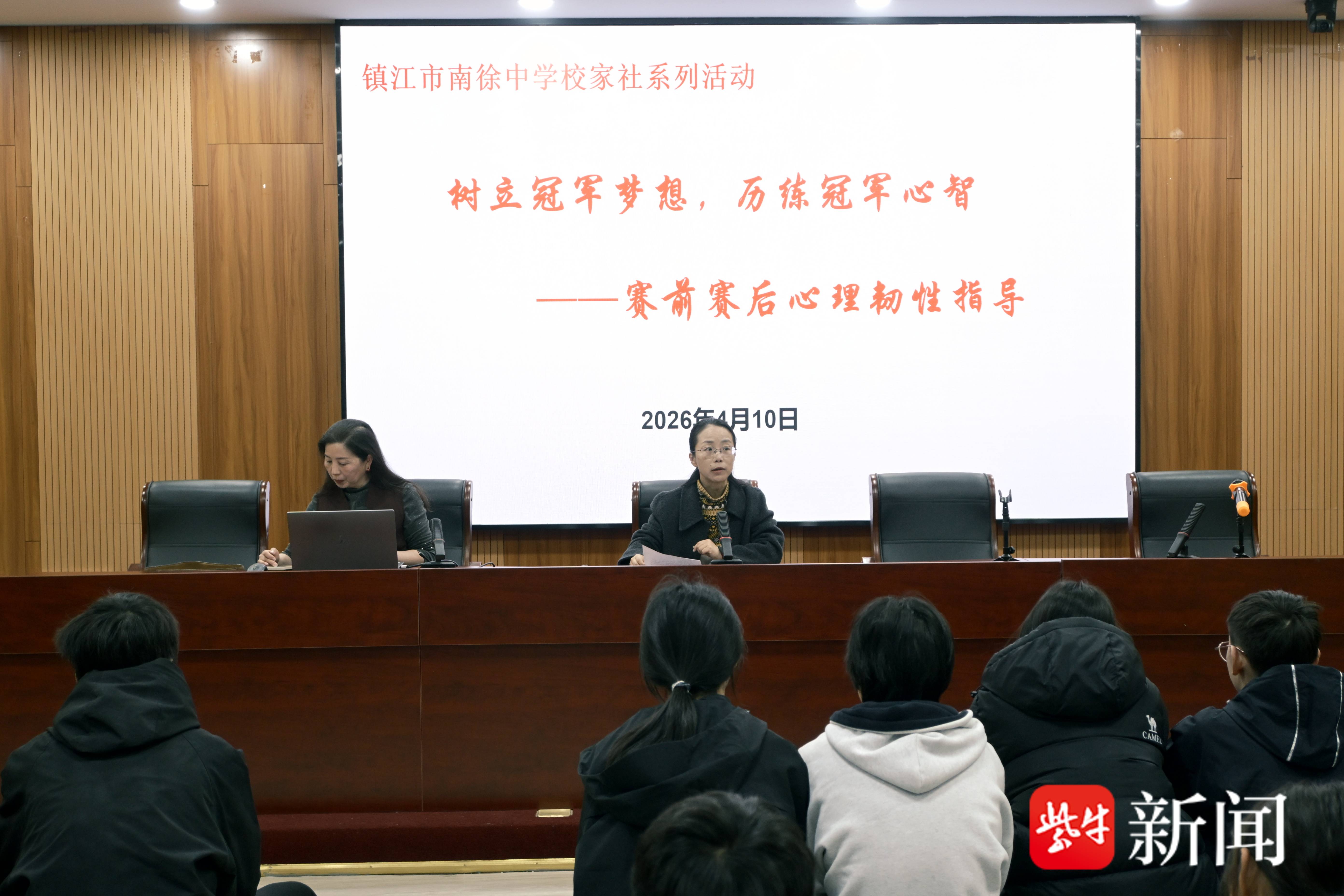 扬子晚报网4月10日讯(通讯员 杨莉 记者 姜天圣)为深入推进校家社协同育人体系建设,切实加强青少年心理健康教育,助力运动员学子以积极心态应对成长与赛事挑战,4月10日,镇江市南徐中学开展校家社教联体系列活动,特邀校联体成员单位市未成年人成长指导中心的林霞主任,为全体运动员学生开展“树立冠军梦想,历练冠军心智——赛前赛后心理韧性指导”专题讲座。