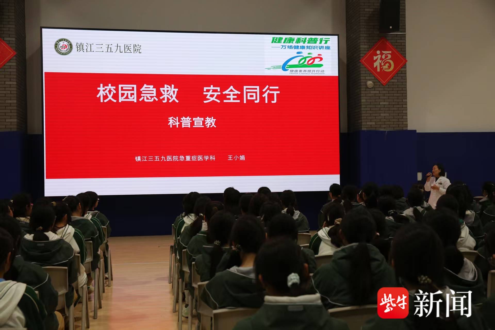 镇江三五九医院是一所集医疗、教学、科研、预防、保健为一体的综合医院,始终坚持姓军为兵、服务百姓的使命宗旨。此次医院选派经验丰富的专家团队,将专业的急救知识与技能系统带入校园,与学校共同编织一张生命“防护网”。