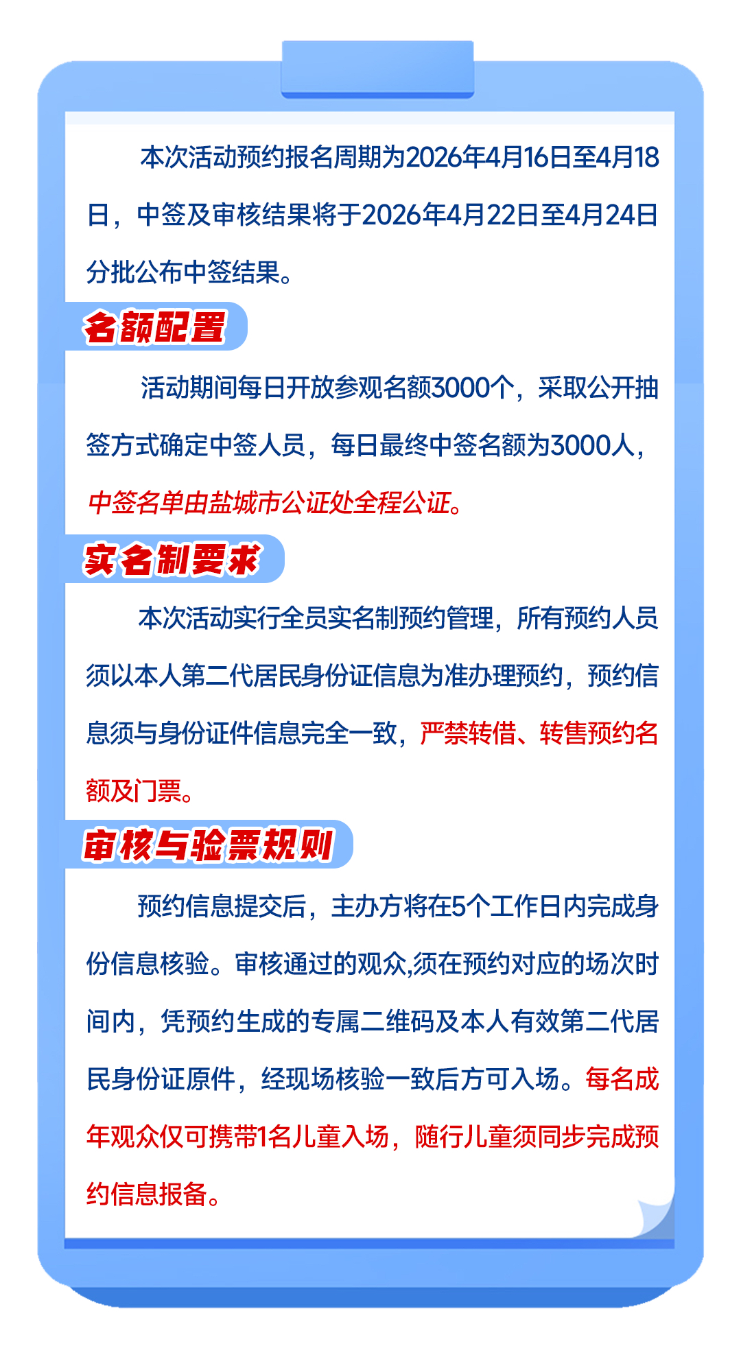 本次活动分上午、下午两个场次开放:上午场为08:30-11:30,入场截止时间为10:30;下午场为14:00-17:30,入场截止时间为16:30,逾时将停止验票入场,市民游客可根据预约时间错峰参观。