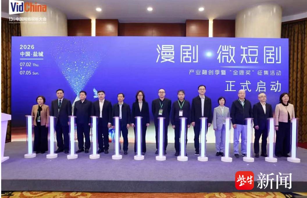 活动现场,中共盐城市委常委、宣传部部长陈卫红亮相论坛,向全国视听行业领军人物、创作精英重磅推介“Nice盐城·短剧之城”,并与中宣部对外推广局、国家广电总局等部门领导共同启动2026漫剧·微短剧产业融创季暨“金鹿奖”征集活动。