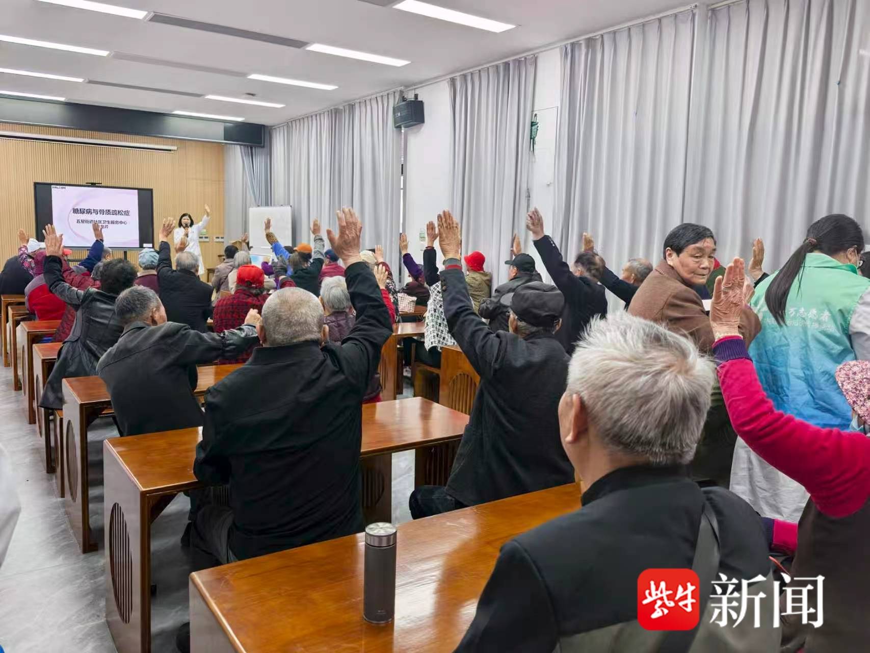 为进一步提升辖区居民健康素养,普及科学实用的健康知识,引导居民养成文明健康的生活方式,4 月 15 日下午,盐城市亭湖区五星街道新时代文明实践所联合万户新村新时代文明实践站、五星街道社区卫生服务中心,共同举办 “健康生活 远离疾病” 主题健康知识讲座,吸引辖区众多居民踊跃参与。