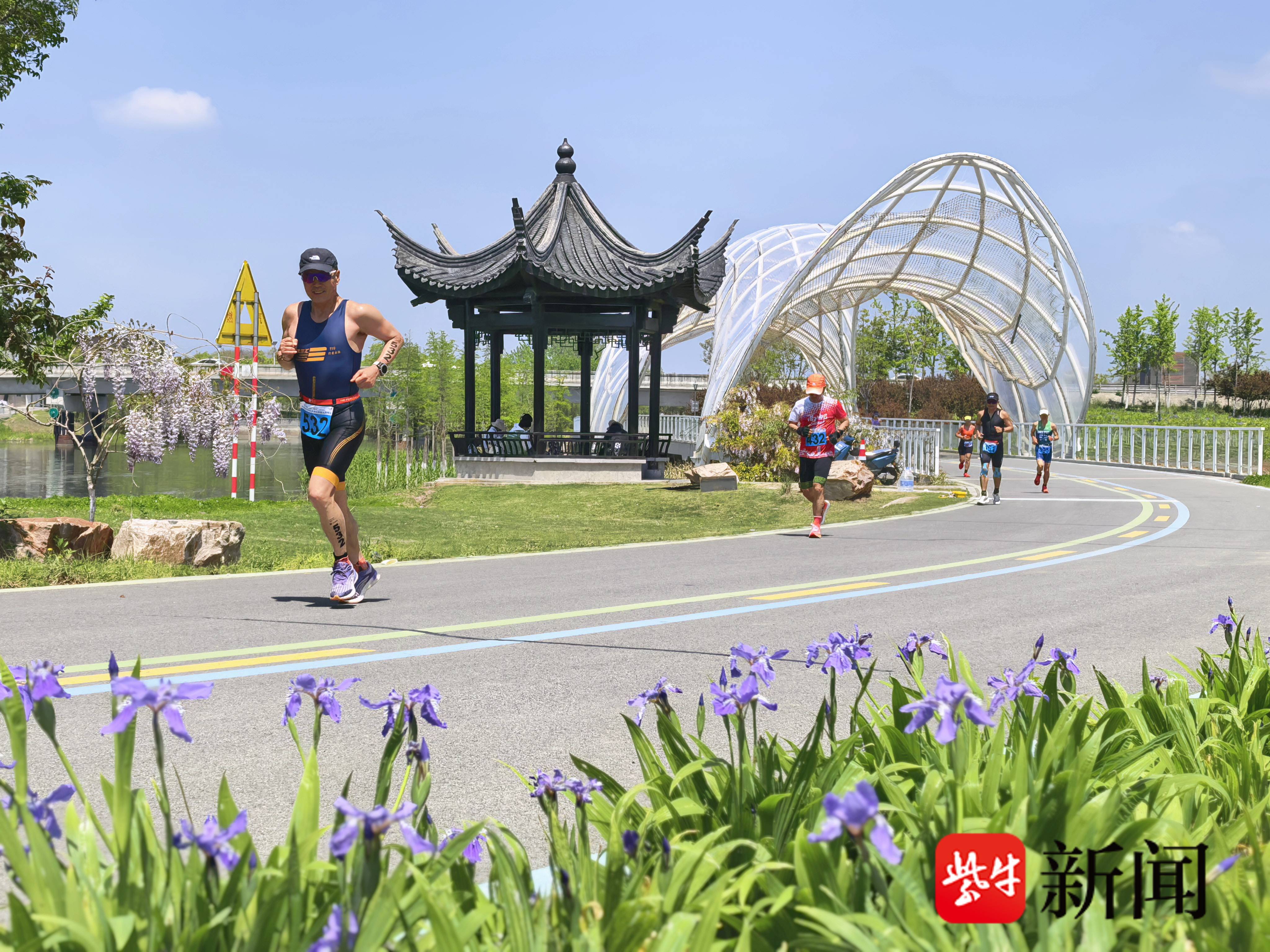 上午8时30分,随着发令声响起,参赛选手竞相跳入水中,正式开启1.5公里游泳赛程。完成游泳赛段后,选手们迅速转换装备,沿着风光旖旎的蟒蛇河水上生态廊道,开启44公里的沿河自行车骑行,途经花海长堤、生态绿道,在清风拂面中感受盐都水乡的灵动与惬意;随后,选手们转入10公里的生态跑步赛段,在草木葱茏的河畔奋力冲刺,真正实现了 “一步一景,一程一画卷”。