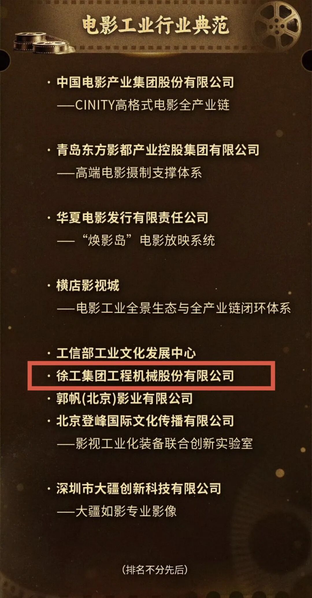 大国重器赋能中国电影!徐工集团荣膺“电影工业行业典范”