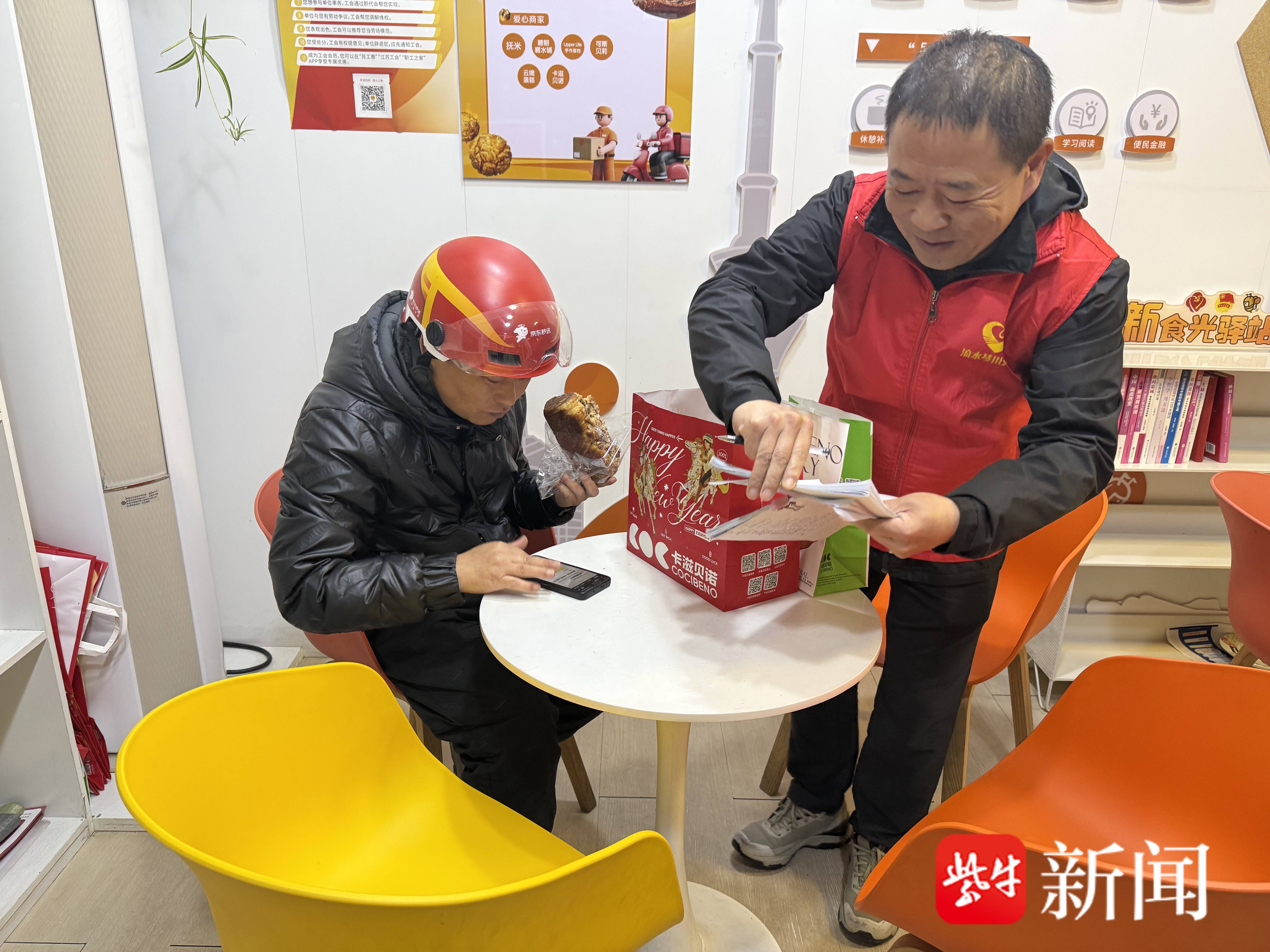 领得久了,他心里也一直记着这份照顾。“总吃人家的哪好意思,今天正好顺路,就过来帮帮忙,心里才过得去。”打包完毕后,李双洋又骑车把面包送到“蜂享吧”。在他看来,这里不只是领面包的地方,也是常熟为外卖骑手、快递员等新就业群体设立的党群服务点,“有空调、有热水,手机没电了还能来充充电”。