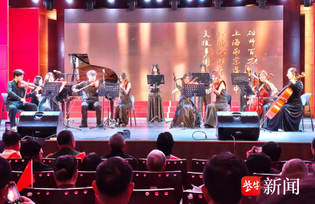 男声独唱《当那一天来临》铿锵激昂,唱出海军将士保家卫国的坚定信念与“若有战,召必回”的忠诚担当,令人热血沸腾。随后,该校室内乐团的弦乐合奏《军港之夜》悠扬静谧,如月光洒向军港,勾勒出水兵坚守的动人画面,刚柔并济间尽显海军铁骨与柔情。一曲终了,演出进入“水兵归乡”篇章,温情迎接泰州舰“回家”。