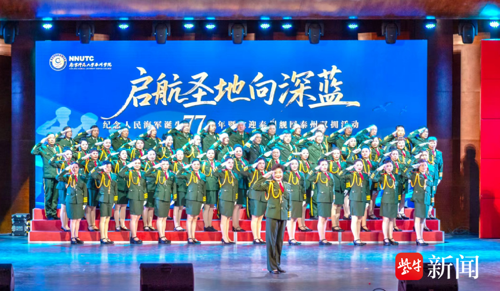 4月21日下午,泰州凤凰音乐厅暖意融融。由泰州市退役军人事务局、南京师范大学泰州学院联合主办,泰州市拥军志愿者联合会等三家单位承办的“启航圣地向深蓝”——纪念人民海军诞生77周年文艺演出暨欢迎泰州舰回家双拥活动,由此隆重启幕。