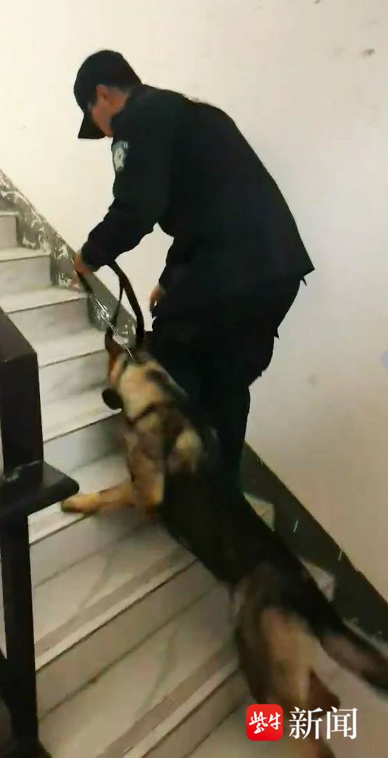 很快,训导员桑长城带着警犬“阿尼亚”火速抵达现场。“阿尼亚”在确认嗅源后,在桑长城的带领下,以小张的姑姑家为起点,迅速投入搜寻工作。由于楼道内铺满光滑的瓷砖,“阿尼亚”的爪子在每一级台阶上都难以找到着力点,攀爬时频频打滑,体力消耗极大。
