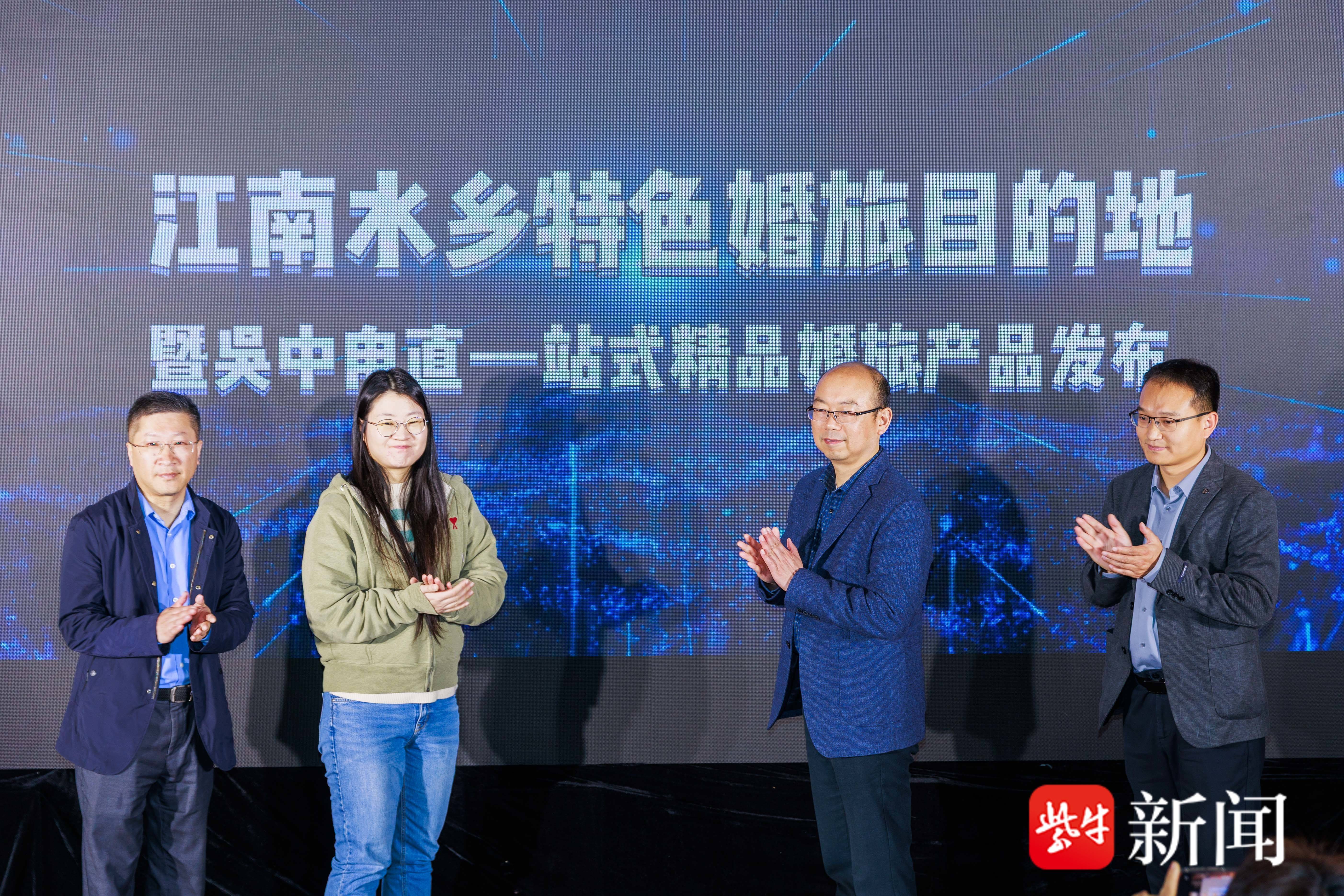 苏州市民政局社会事务处四级主任科员张自萌,吴中区民政局党组副书记、副局长张炜,甪直镇党委委员张春茂,苏州大学地方治理研究院副院长、政治与公共管理学院副教授、民政部社会事务专家委员会专家委员刘成良登台发布江南水乡特色婚旅目的地暨吴中甪直一站式精品婚旅产品,标志着甪直婚旅产业正式迈入标准化、品牌化、一体化发展新阶段。该系列产品涵盖水乡婚礼定制、古镇旅拍、婚宴配套、非遗体验等多元服务,满足新人从求婚、领证到婚礼、蜜月的全周期需求。