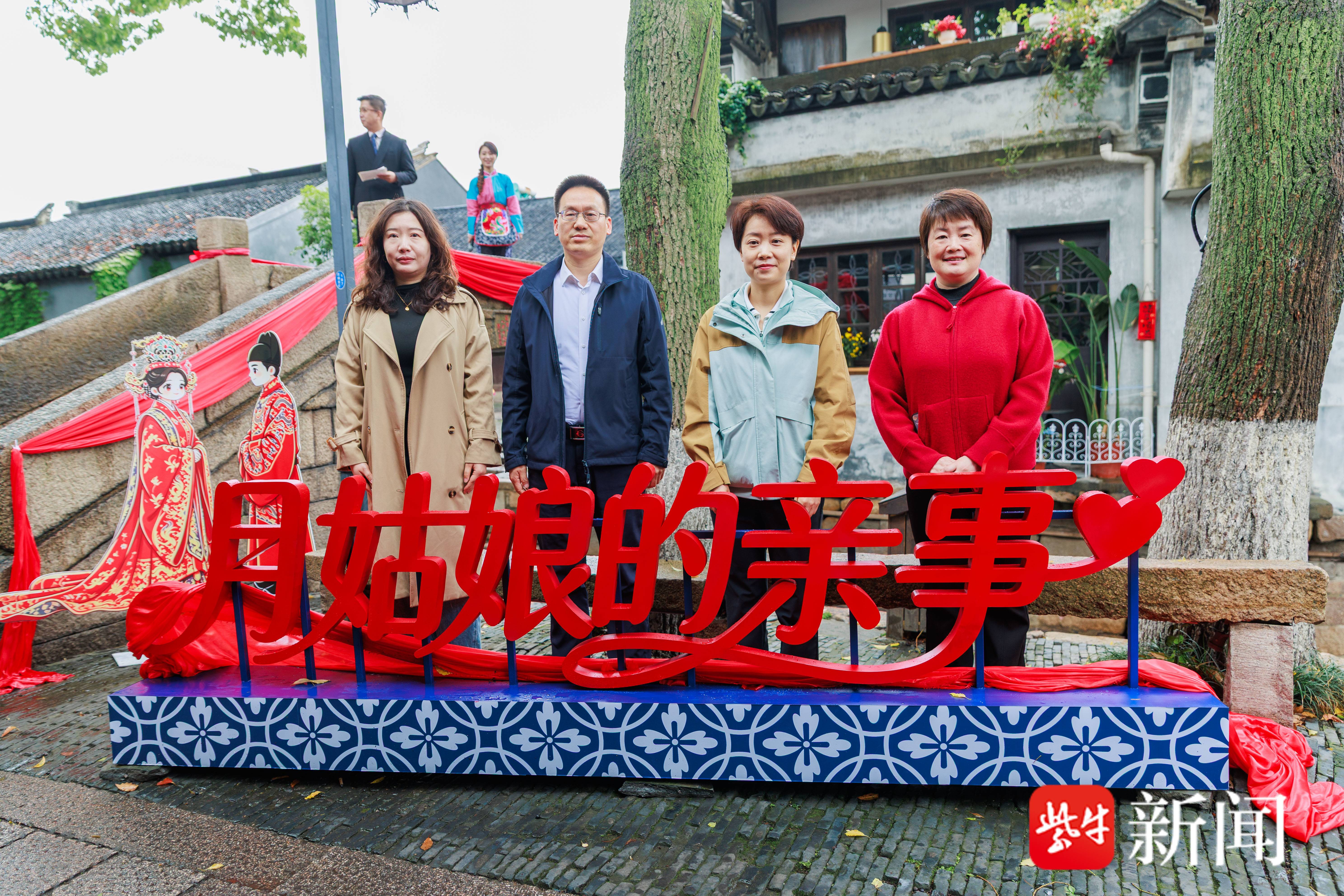 吴中区妇联、区总工会、团区委、区文体旅局相关领导共同揭牌,“月姑娘的亲事”江南特色婚恋IP正式发布,代表这一聚焦青年社交、融合传统与现代的婚恋品牌落地甪直。