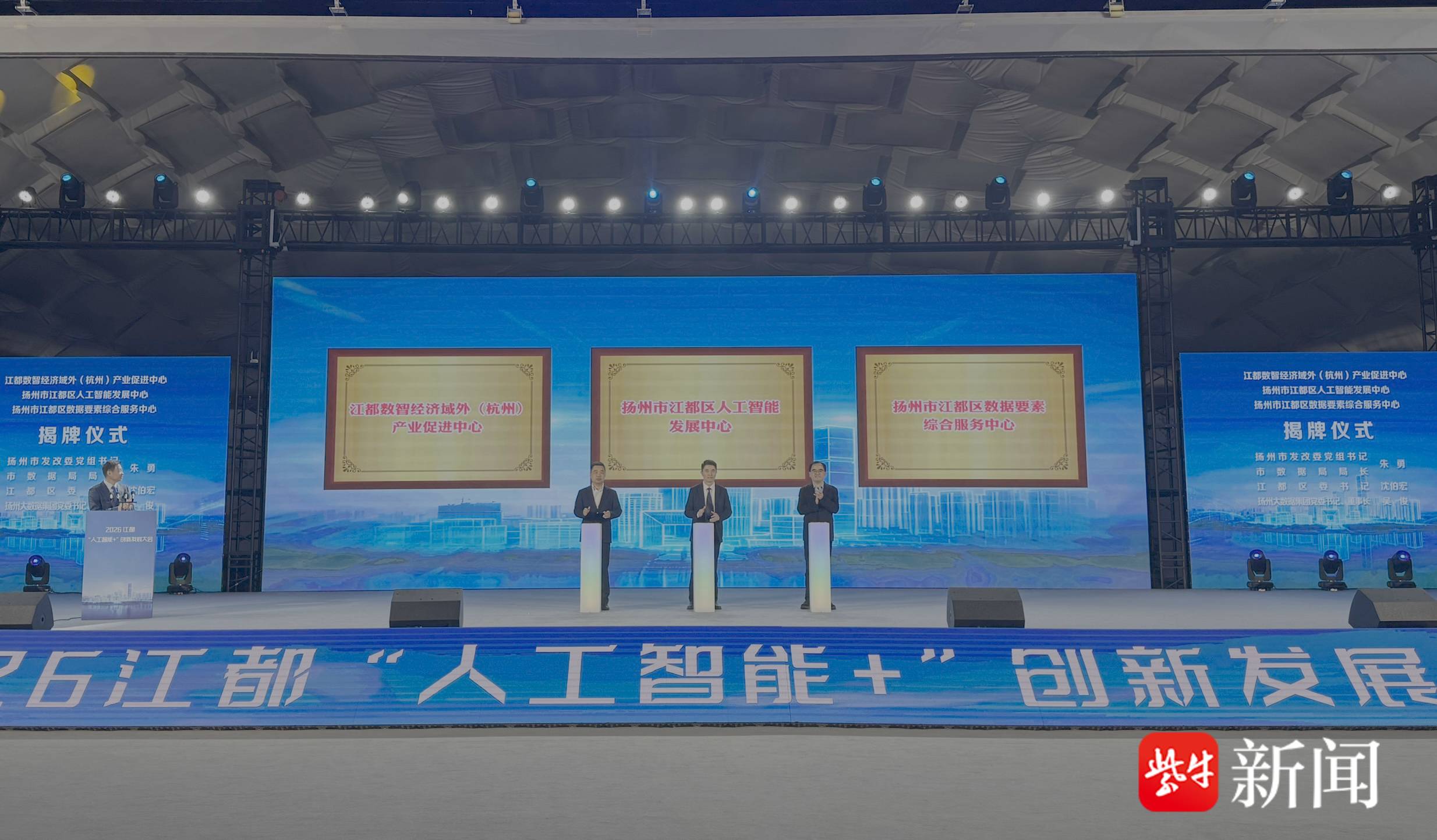 市领导致辞中希望江都以此次大会为契机,持续做强数字基础设施、做优数据要素生态、做大人工智能产业,为全市数智经济发展打造标杆、贡献力量。大会举行揭牌仪式,江都数智经济域外(杭州)产业促进中心、扬州市江都区人工智能发展中心、扬州市江都区数据要素综合服务中心正式揭牌,标志着江都人工智能产业载体、数据要素服务体系迈上新台阶。区数据局、工信局、高新区及江都移动依次作交流发言,分别围绕人工智能赋能政务服务、智能制造、数智经济培育、数字基建升级等领域亮目标、谈举措、作承诺。