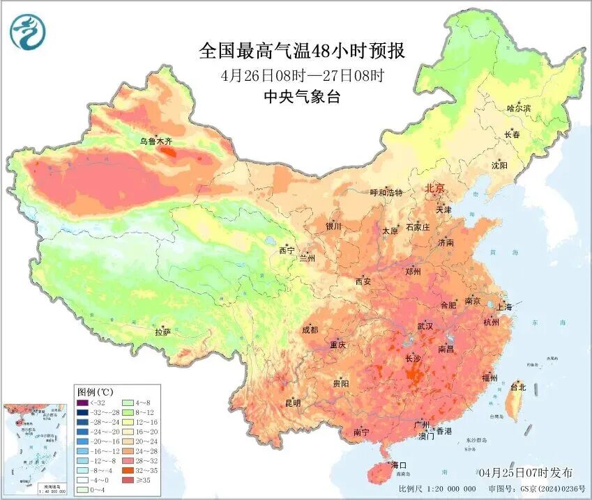 全省最高气温达24-29℃
