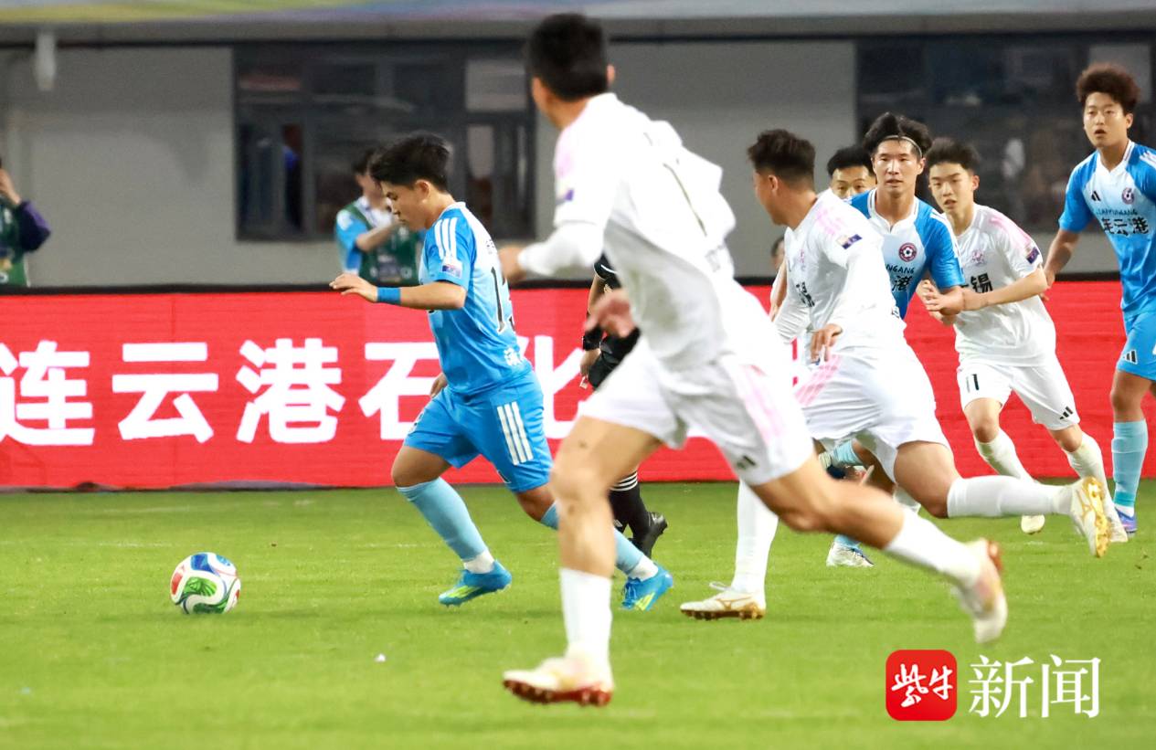 比赛开场仅3分钟,无锡队一记禁区内劲射率先发难,但连云港门将李海涛成了主角。第18分钟,他飞身扑出刁钻的定位球;第22分钟,又用身体挡出单刀——整个上半场,无锡队控球占优,射门多达15次,却始终无法突破这面“叹息之墙”。而另一边,16岁的无锡小将刘靖磊在右路如“边路超跑”般频频制造杀机,成为苏超最年轻的首发球员。尽管他因伤提前下场,但这份青春锐气,连同看台上无锡球迷在第16分钟为对手球员胡升嘉合唱的生日歌,让胜负之外多了一层温度。
