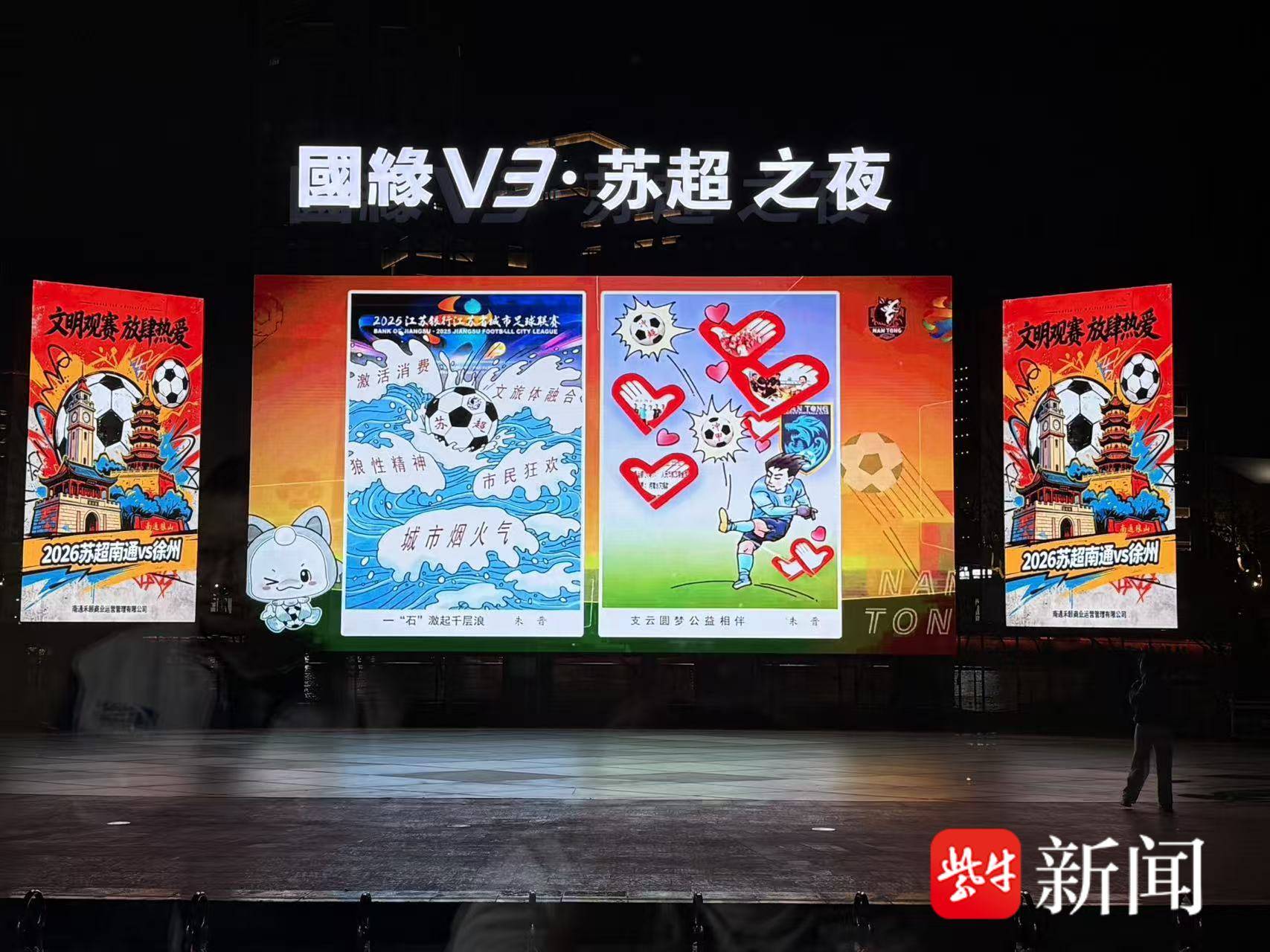 扬子晚报网讯(记者 朱亚运 通讯员 张甜甜)江海潮涌,绿茵入画。随着2026年江苏足球超级联赛(苏超)新赛季火热开赛,一场体育与艺术交融的文化盛宴在南通精彩上演。4月25日,“梦想闪耀绿茵场”主题漫画展与南通主场赛事同步,在全城多个“第二现场”联动展播,为市民与球迷呈现一场别开生面的观赛与观展体验。