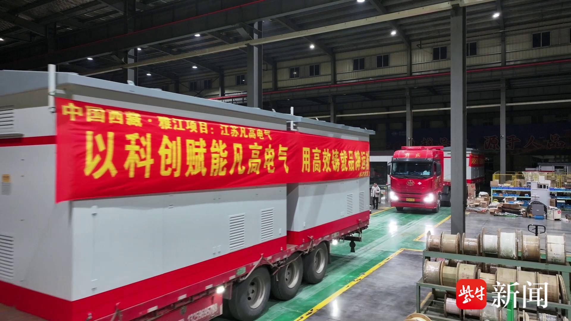 4月24日21:30,江苏凡高电气有限公司厂区内,4台调试完毕的箱式变压器完成装车,正式启运。这批“海安造”设备将跨越5000多公里,预计一周后抵达西藏林芝,服务于“世界超级工程”——雅鲁藏布江下游水电工程。