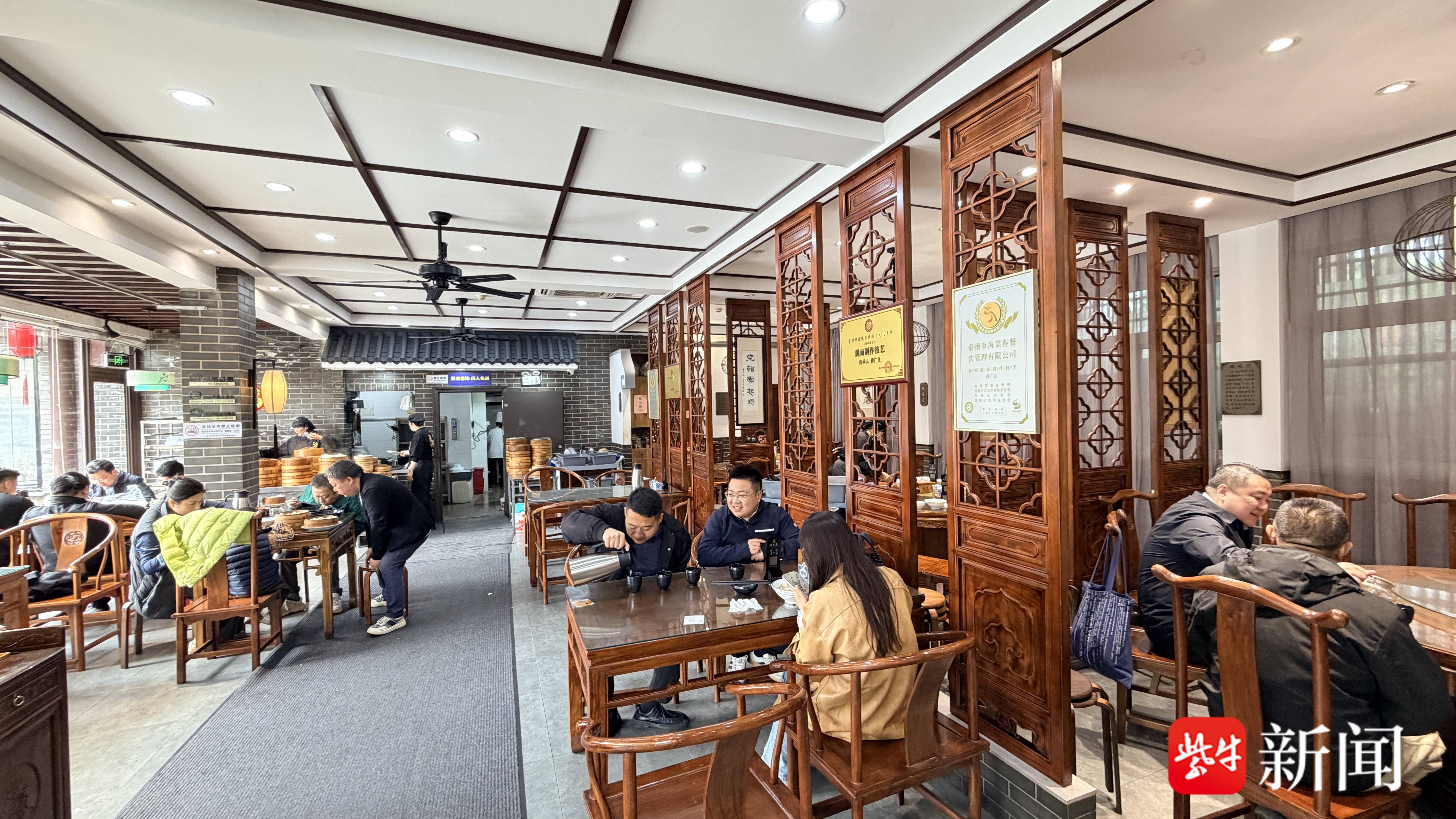 走进海棠春,可触摸到泰州的历史温度。店内古色古香的装修复刻了老泰州茶社的韵味,状元匾额、古朴桌椅与氤氲热气,仿佛让人穿越回百年前的市井街巷。在这里,每一份非遗点心都藏着历史底蕴,每一口滋味都诉说着传承故事,让每一位来访者既能感受山水风光的惬意,更能体会历史人文的厚重。
