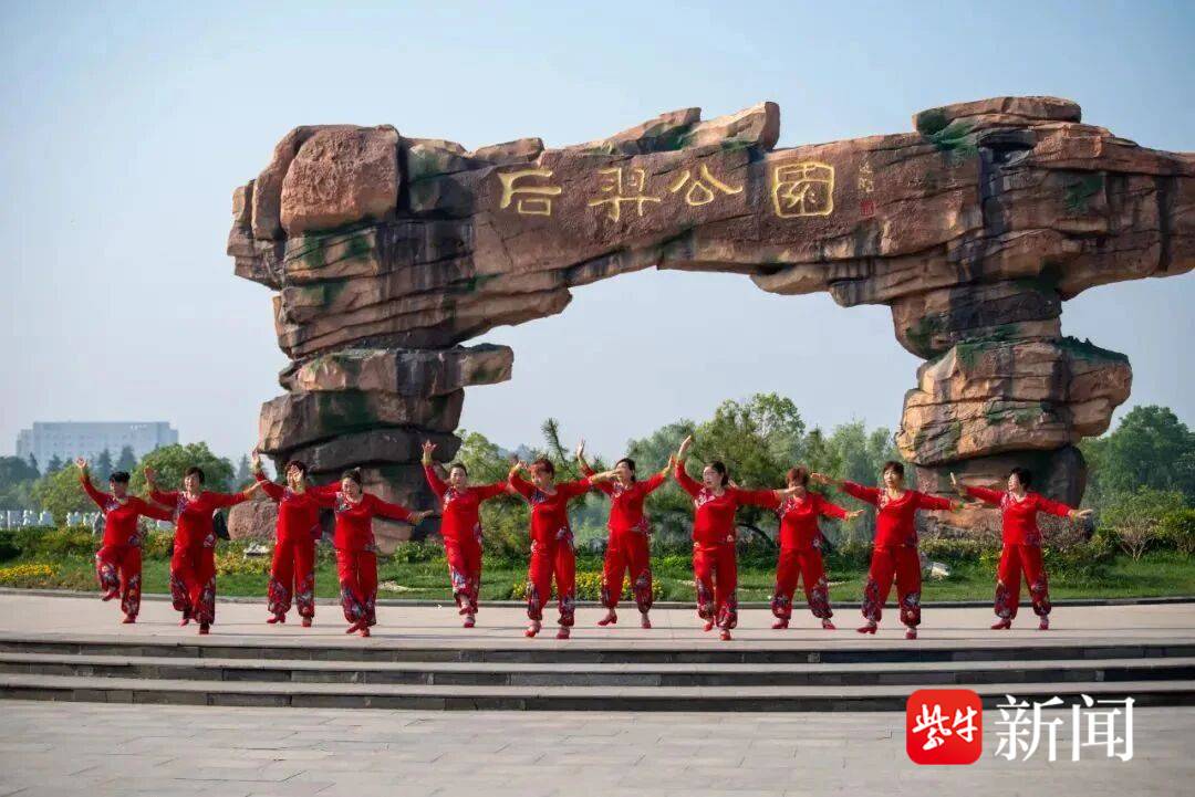 为让沉睡的神话“活”起来,射阳以IP为魂,构建起全方位、沉浸式的IP场景体系,让千年传说可感可触、可游可玩。以后羿文化公园(3A级景区)为核心,打造五大射日广场,生动还原“弯弓射日”的英雄壮举;中华后羿坛雄踞县城,与射阳河、射阳湖交相辉映,成为城市文化地标。从街头景观小品到社区主题墙绘,后羿文化元素融入城市肌理与日常烟火,让游客与市民随处感受独特的神话氛围。