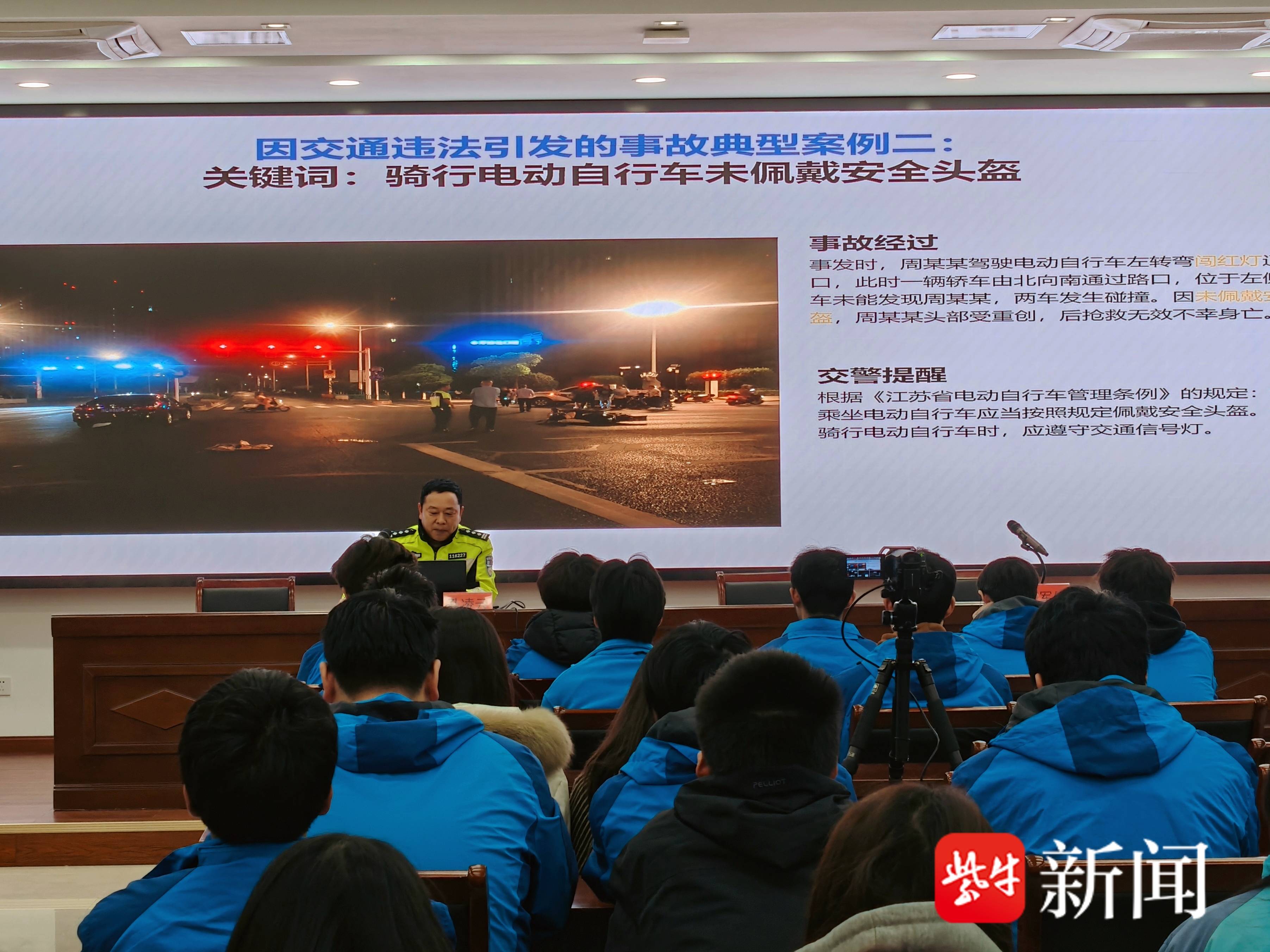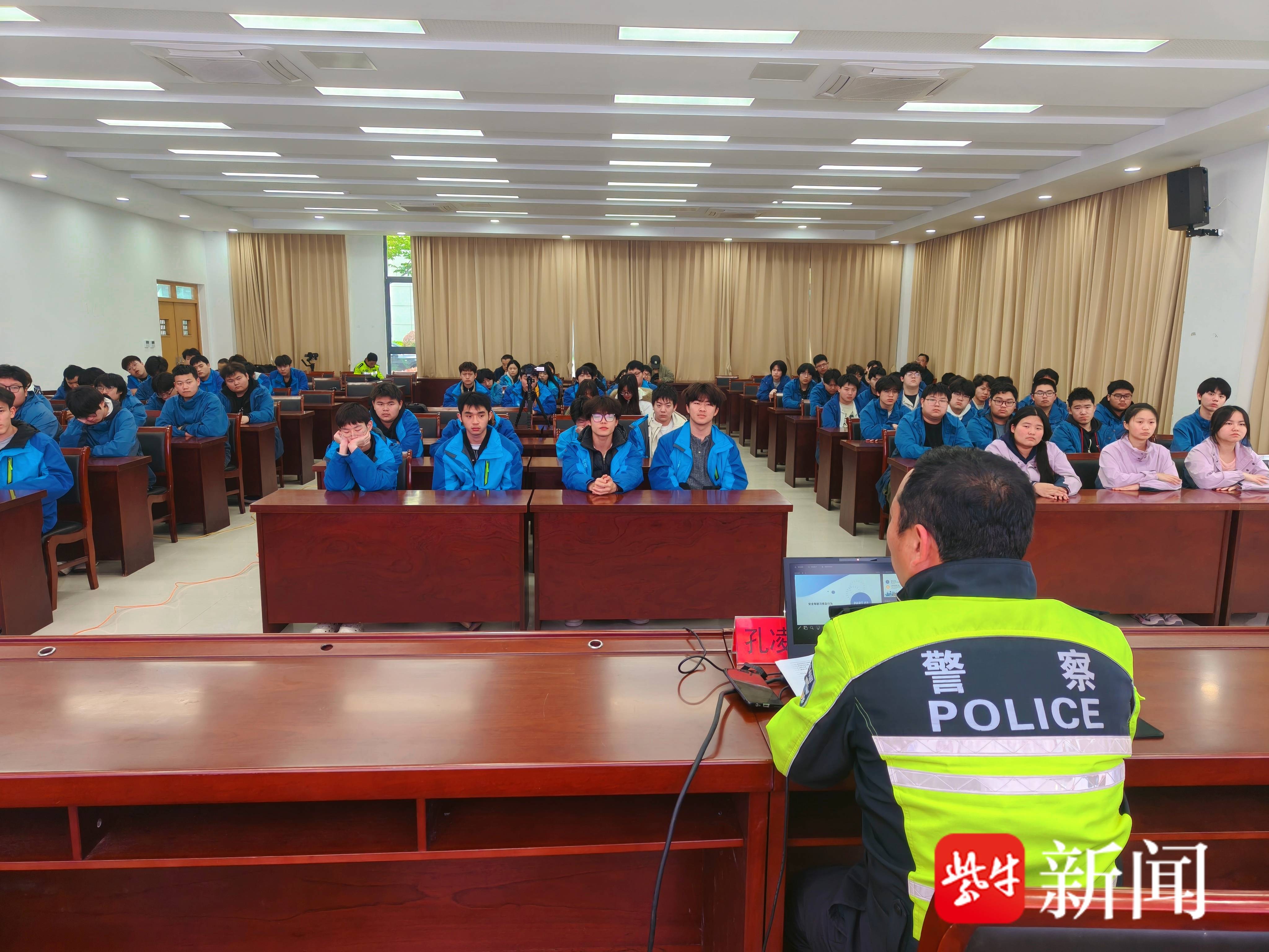 扬子晚报网4月27日讯(通讯员 张进 於荣荣 记者 姜天圣)五一假期将至,为进一步强化学生交通安全意识,从源头防范涉学生交通事故,近日,丹徒交警走进辖区江苏省交通技师学院,开展节前交通安全宣传活动。